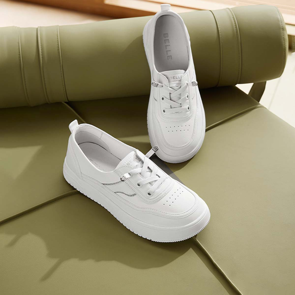 百丽女鞋子妈妈鞋护士鞋通勤板鞋休闲厚底小白鞋女 208026