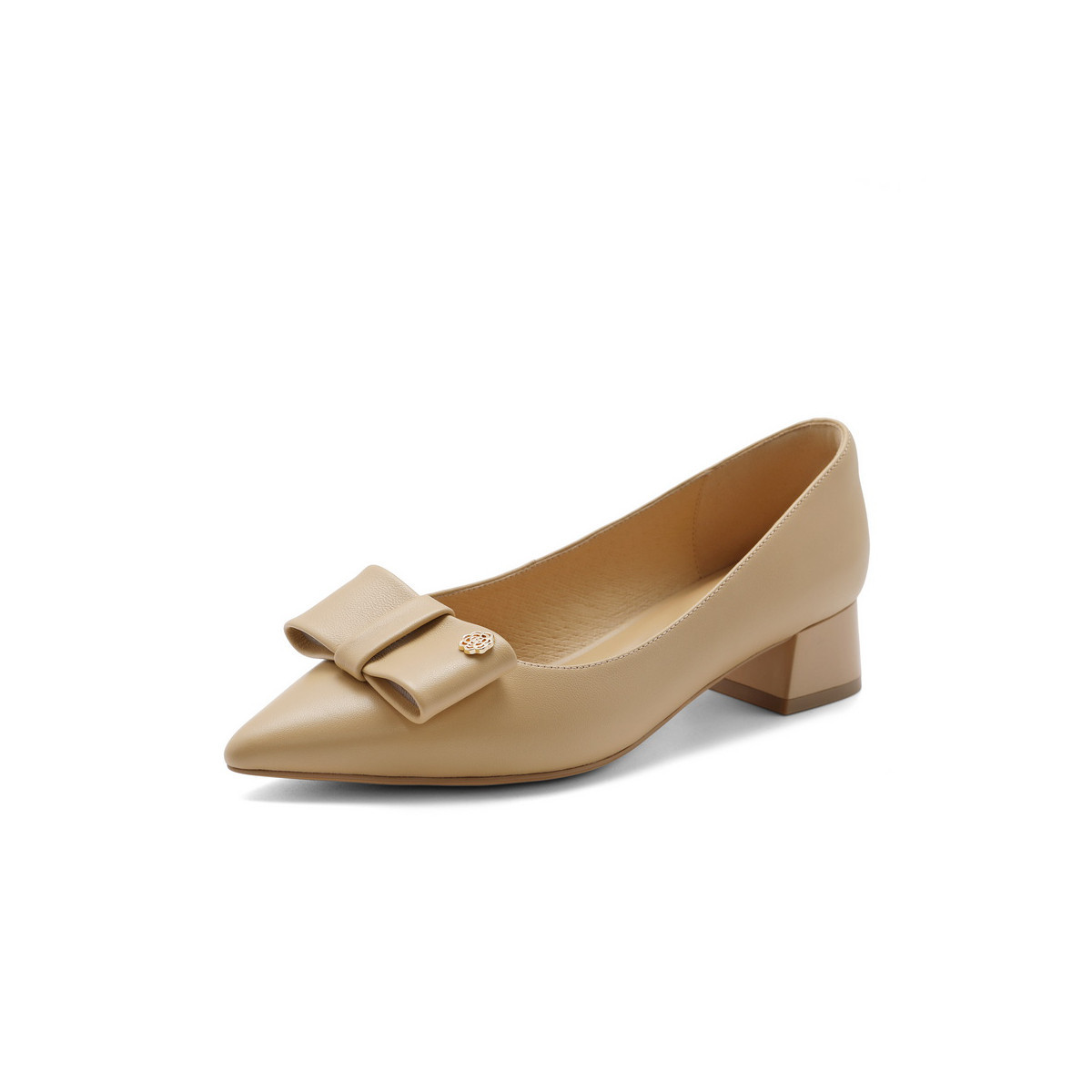 百丽女鞋日常通勤单鞋晚晚鞋温柔风方扣低跟浅口单鞋 953498