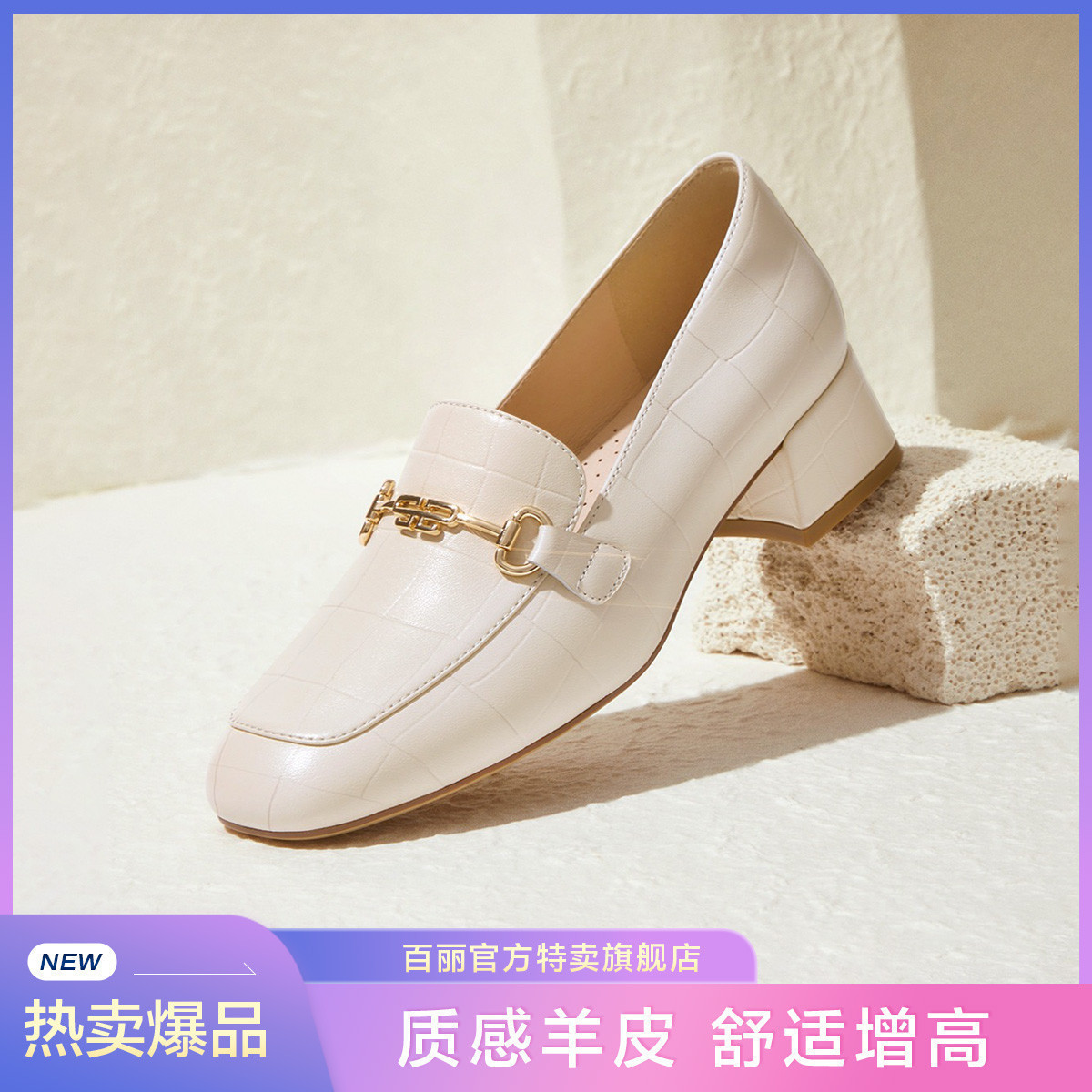 百丽通勤乐福鞋女鞋子高跟鞋真皮上班穿不累脚单鞋 074586