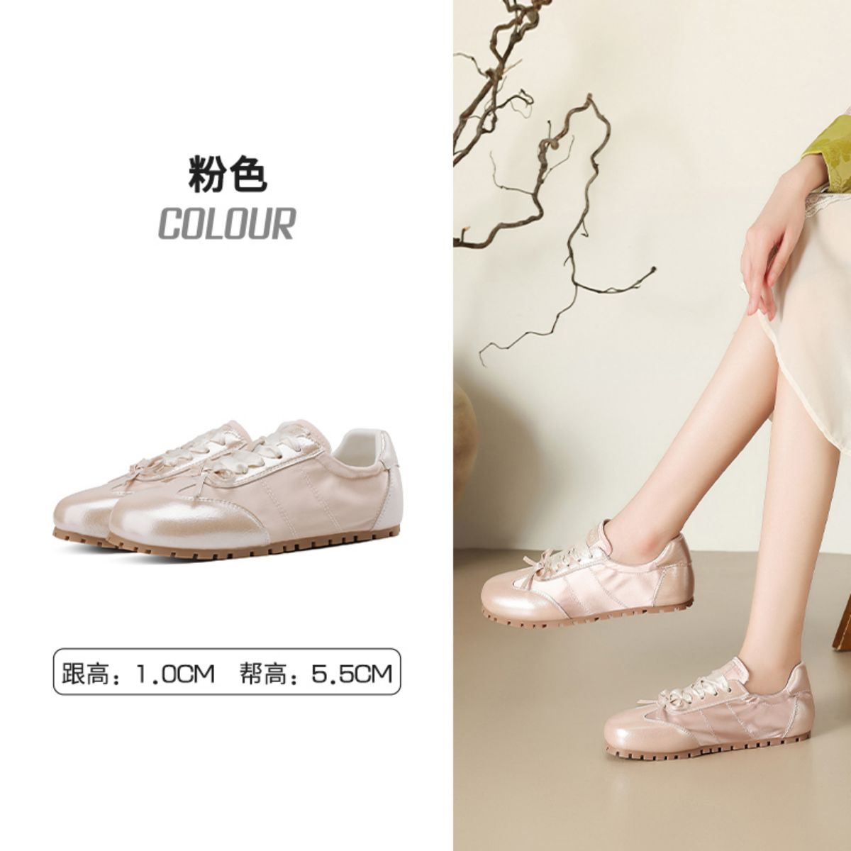 夏季薄款德训鞋女轻便透气运动休闲鞋平底鞋蝴蝶结复古百搭通勤鞋 795415