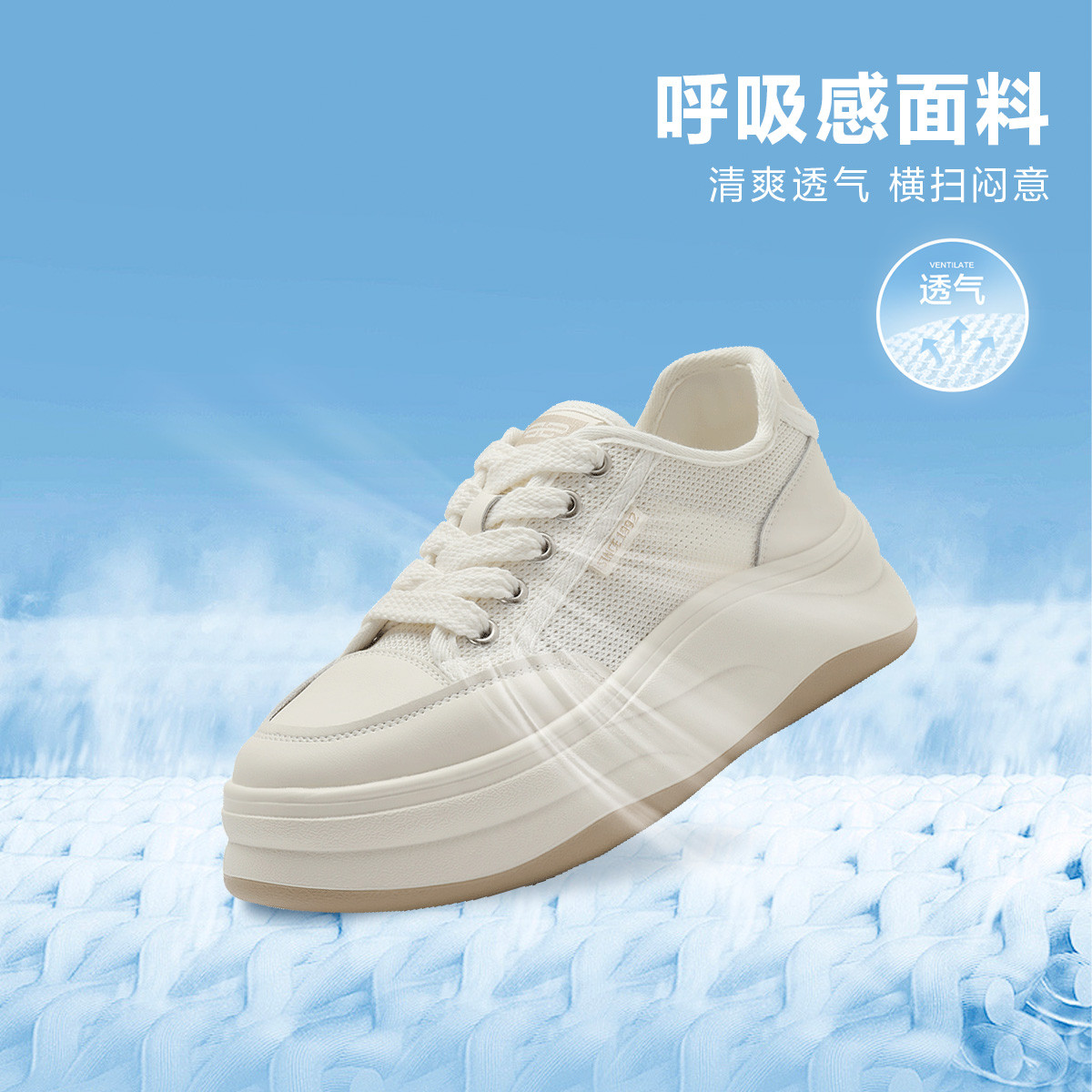 【透气舒适】百丽女鞋子春夏运动休闲鞋网面透气厚底小白鞋女 599770