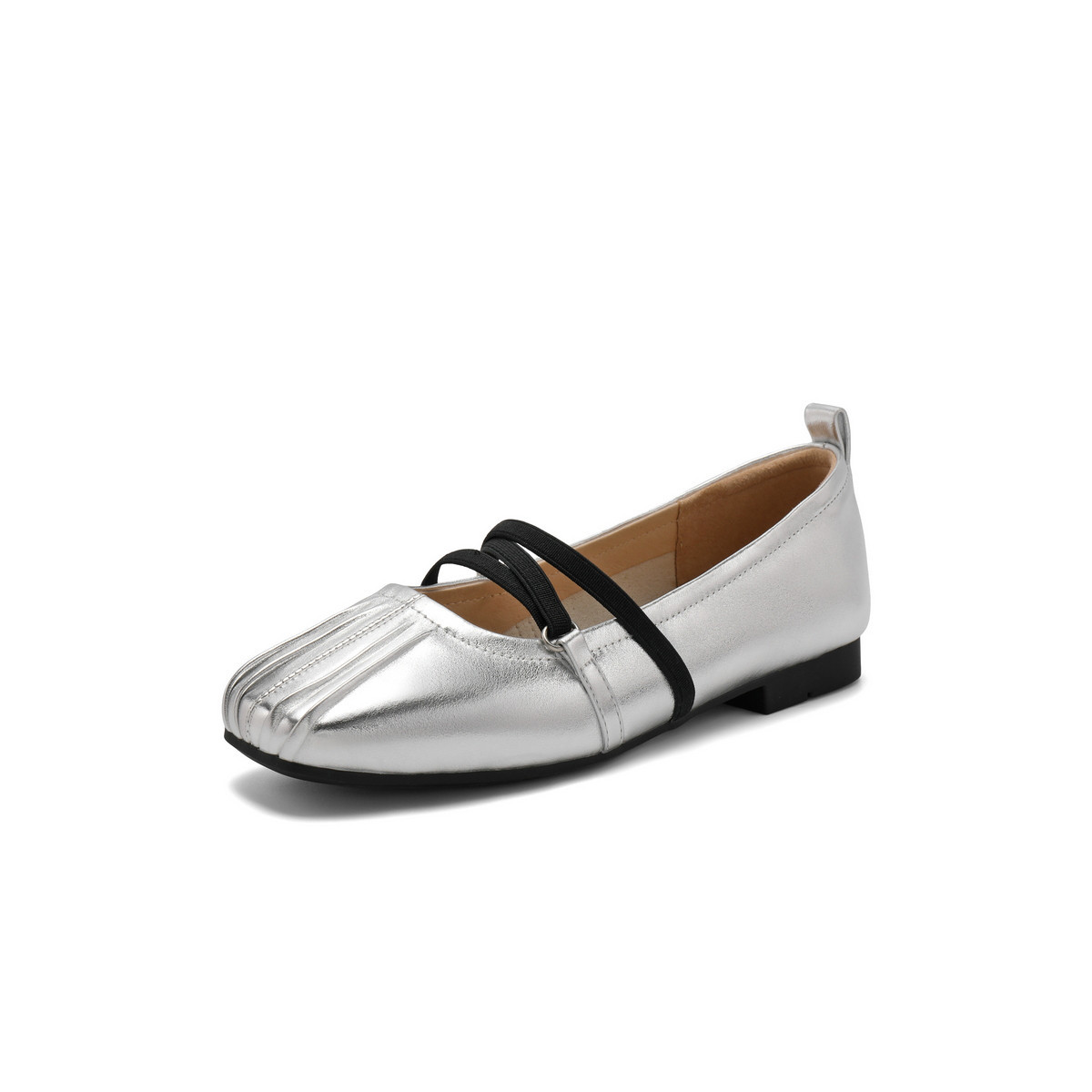 百丽女鞋子春季款新芭蕾鞋晚晚鞋单鞋法式银色玛丽珍鞋 252122