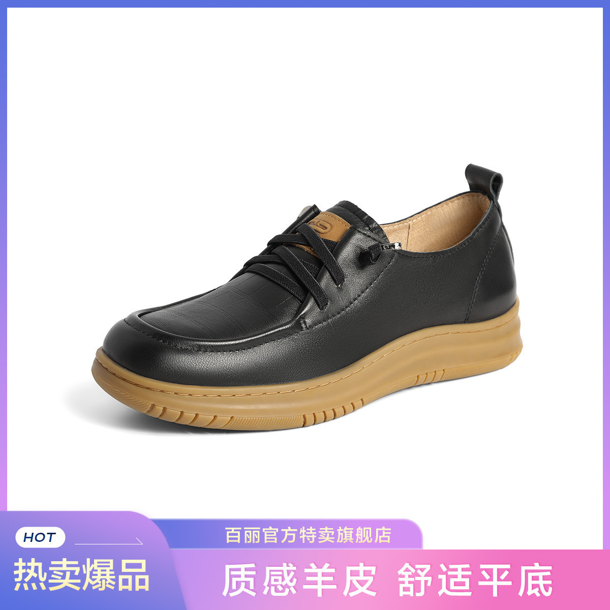 百丽女鞋子妈妈鞋春夏春软底小皮鞋晚晚鞋平底单鞋 552730