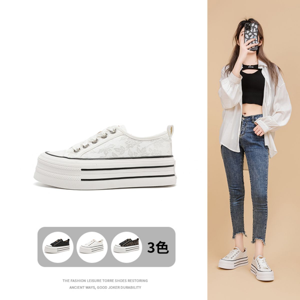 【新中式国风】春夏印花女鞋小白鞋时尚厚底板鞋简约风休闲运动鞋 487127