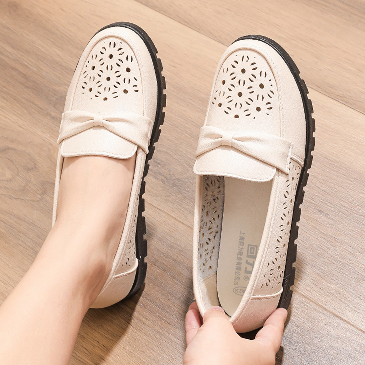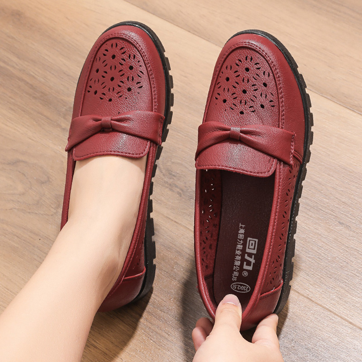 【镂空透气】25夏季季女鞋软皮妈妈鞋中老年乐福鞋女士大码单鞋 498772