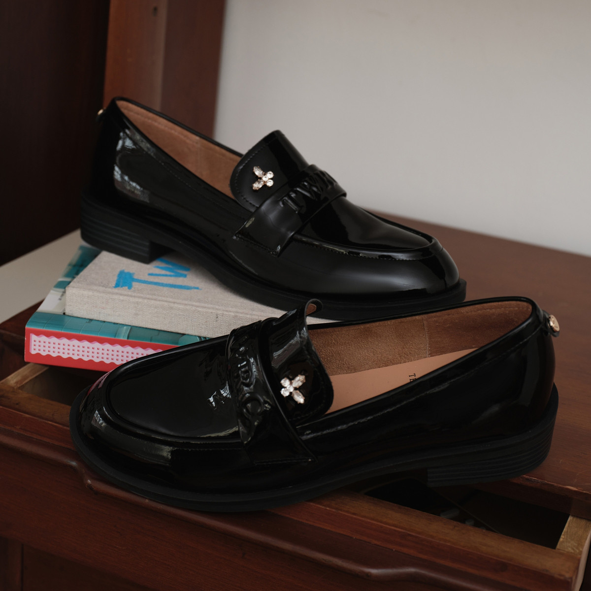 法式春秋季学院风通勤鞋简约浅口粗跟女单鞋乐福鞋女鞋 346010