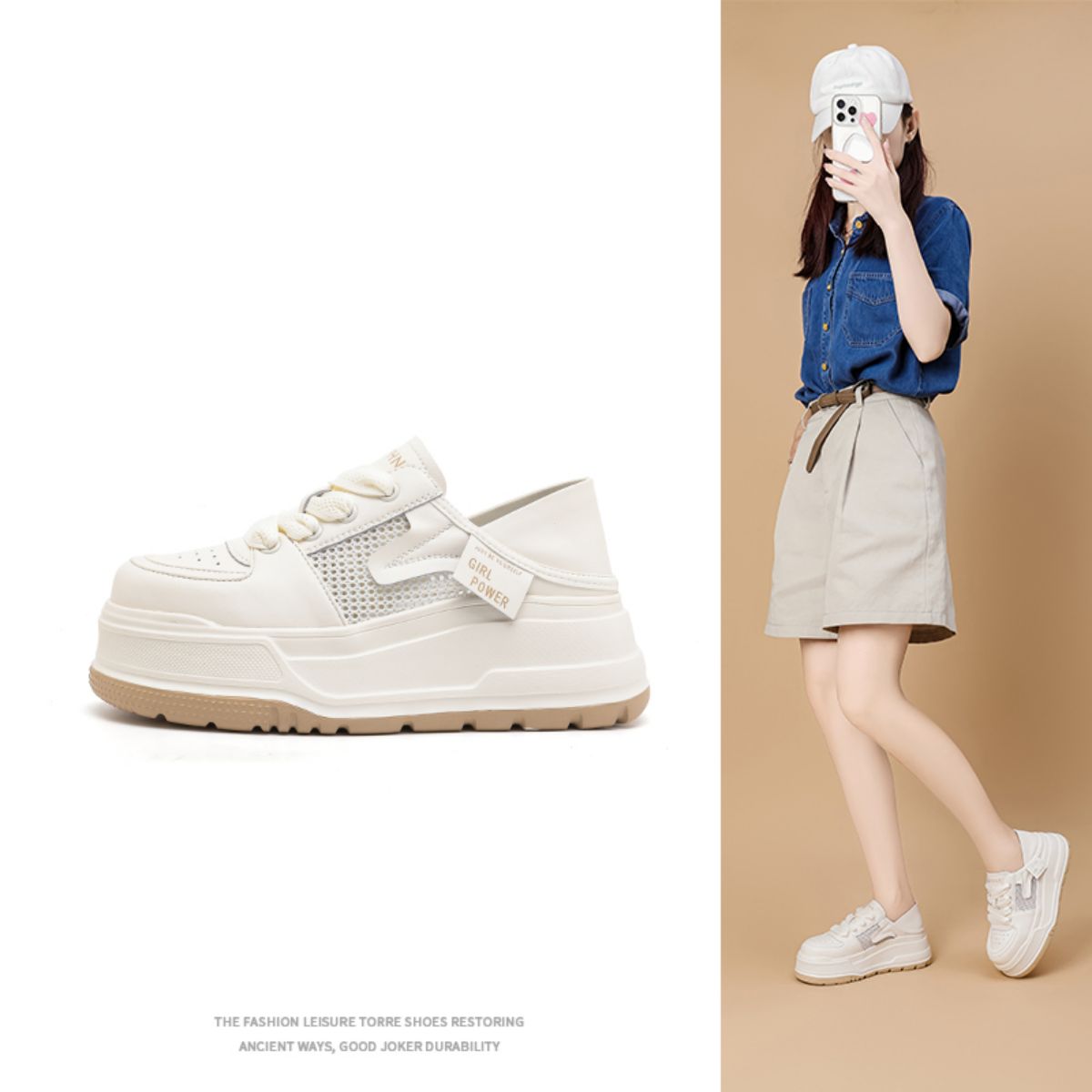 2025夏季爆款网面透气厚底板鞋简约设计女鞋休闲运动鞋小白鞋 428442