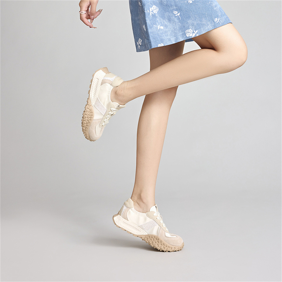 百丽女鞋子花藤小白鞋厚底运动鞋板鞋网面透气休闲鞋 193626