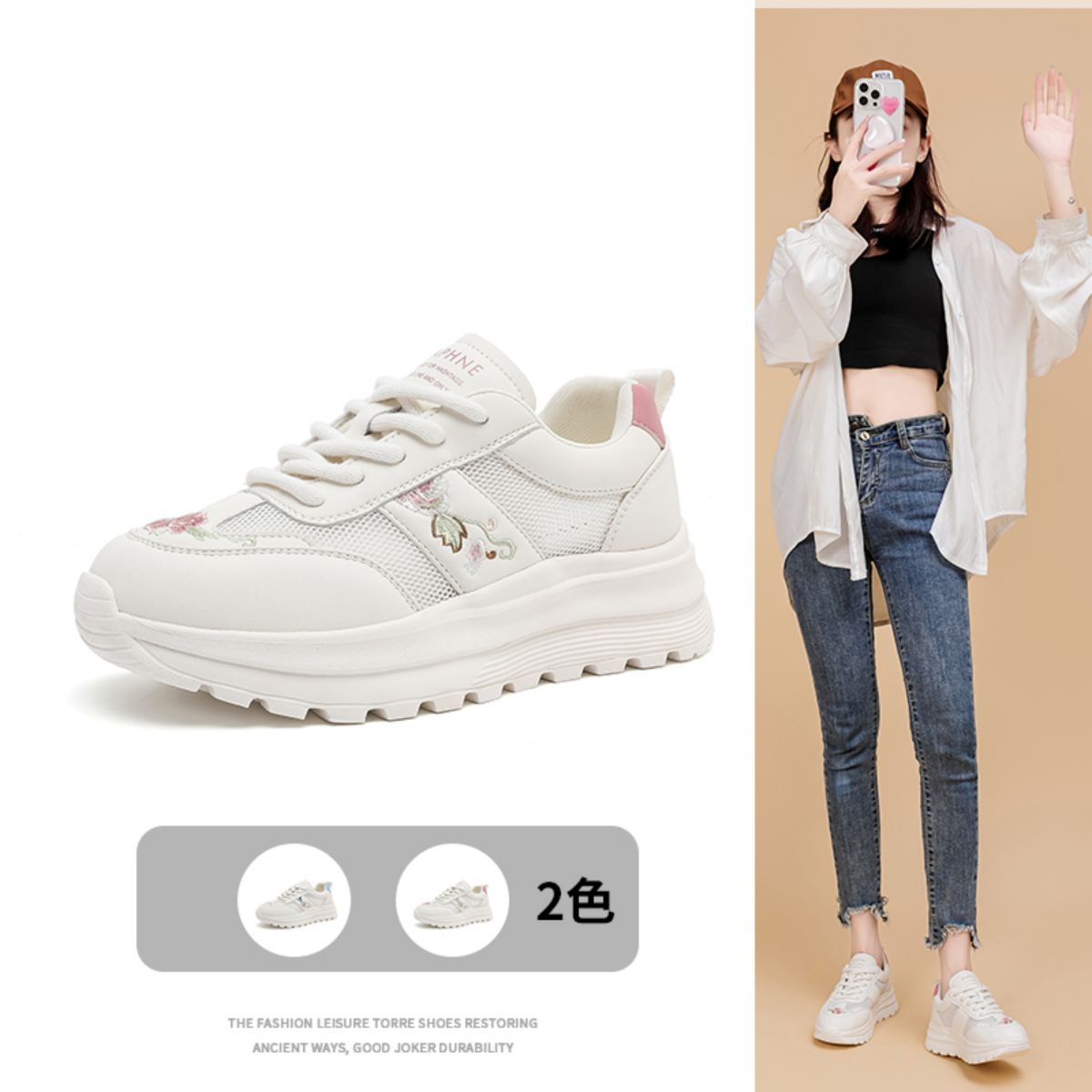 2024春夏国风小白鞋女百搭时尚板鞋厚底耐磨运动休闲鞋女鞋 098327
