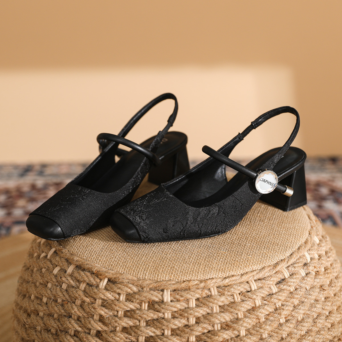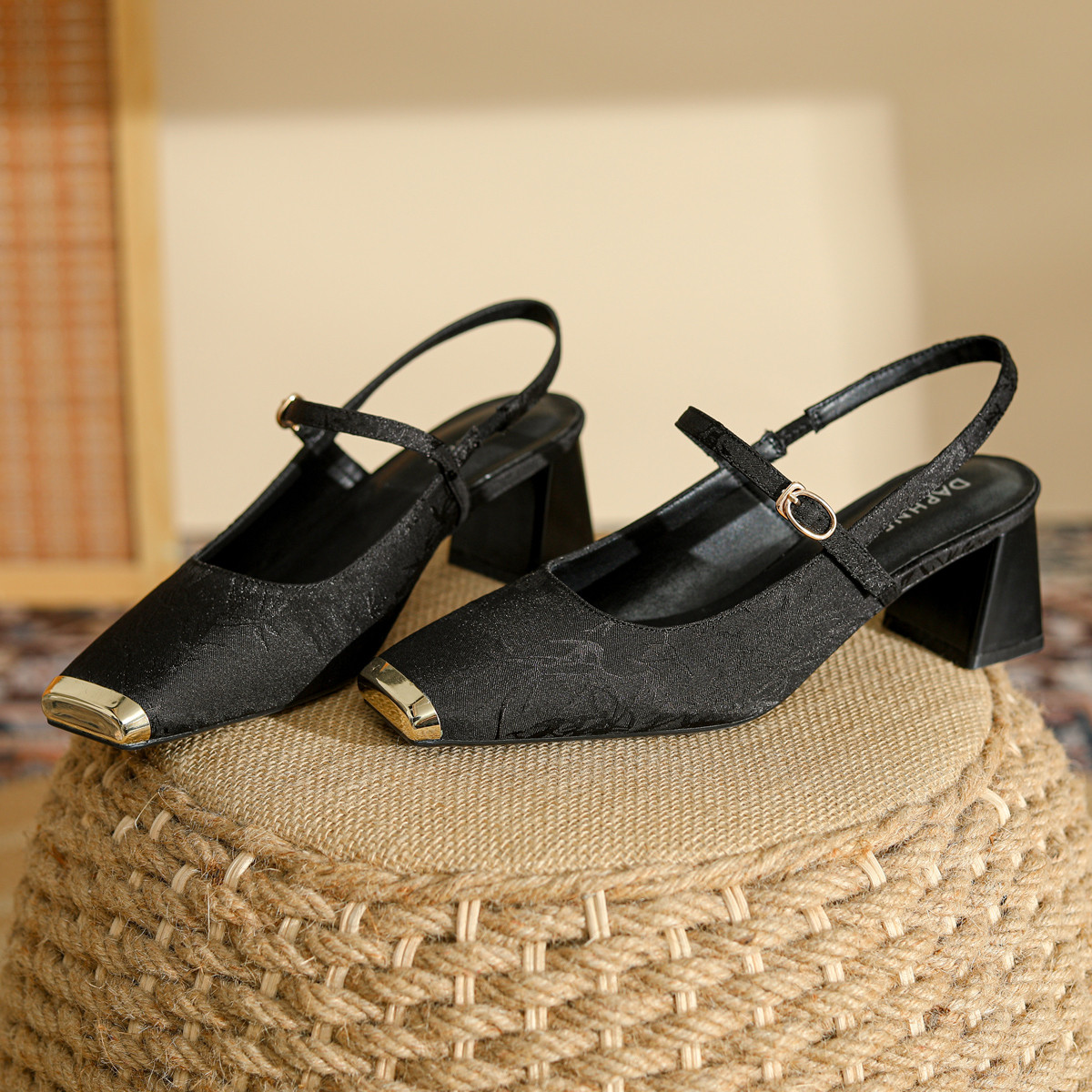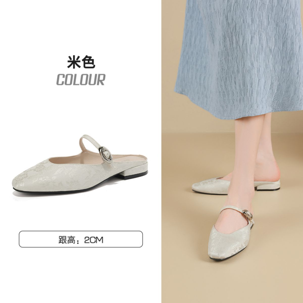 2025夏季新款包头凉鞋女法式粗跟方头浅口单鞋舒适女凉鞋 538263