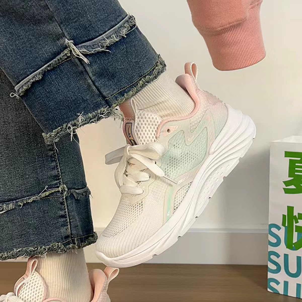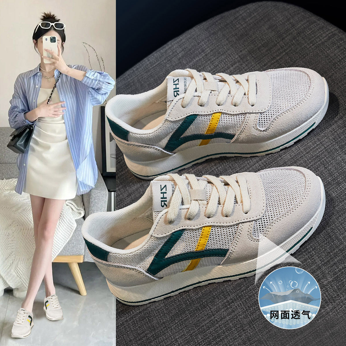 小白鞋女春夏透气网面鞋轻便百搭厚底鞋时尚板鞋休闲运动鞋女 512087