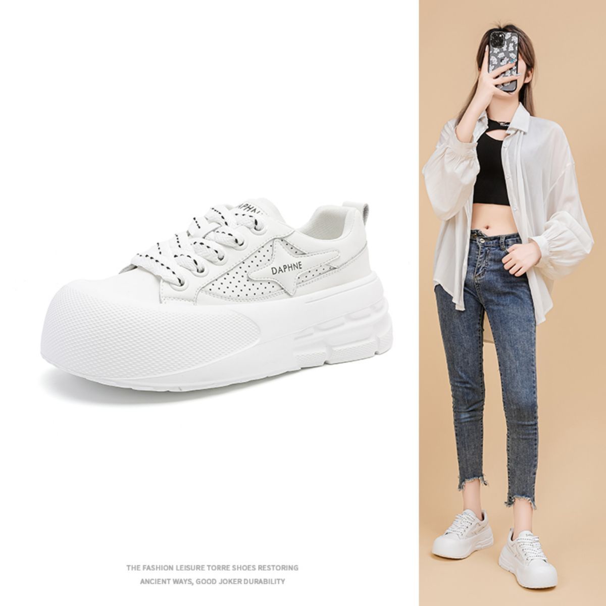 【潮流厚底】春夏季增高透气休闲鞋女时尚板鞋真皮垫小白鞋女鞋子 409306