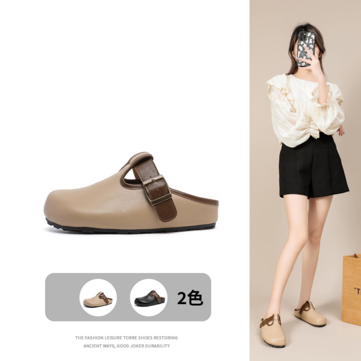 春夏时尚勃肯鞋女后空单鞋一脚蹬轻便平底鞋女通勤鞋 349847