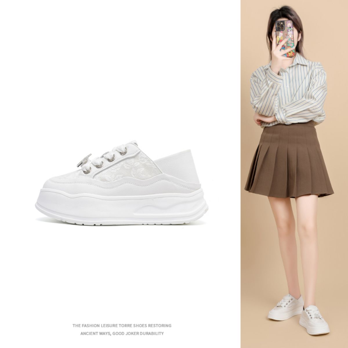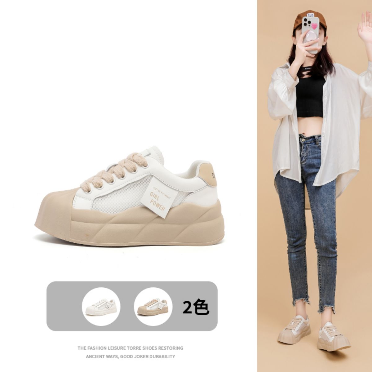【小众贝壳鞋】春夏时尚厚底鞋透气网面薄款休闲运动鞋低帮板鞋女 491607