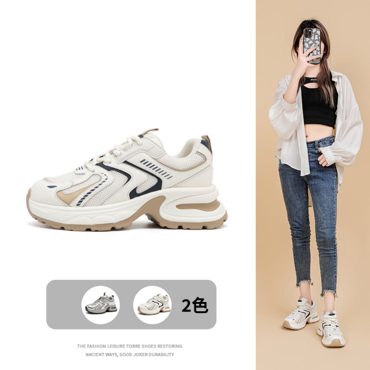 【时尚百搭】春夏透气运动鞋休闲鞋网面厚底老爹鞋百搭户外女鞋 072410
