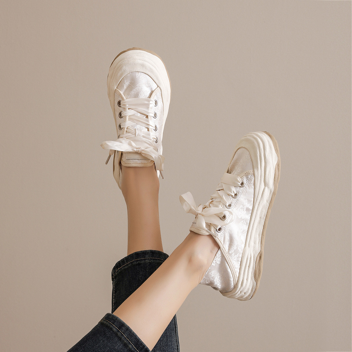 帆布鞋女2024新款秋季溶解板鞋港风低帮休闲百搭平底小白鞋 602586