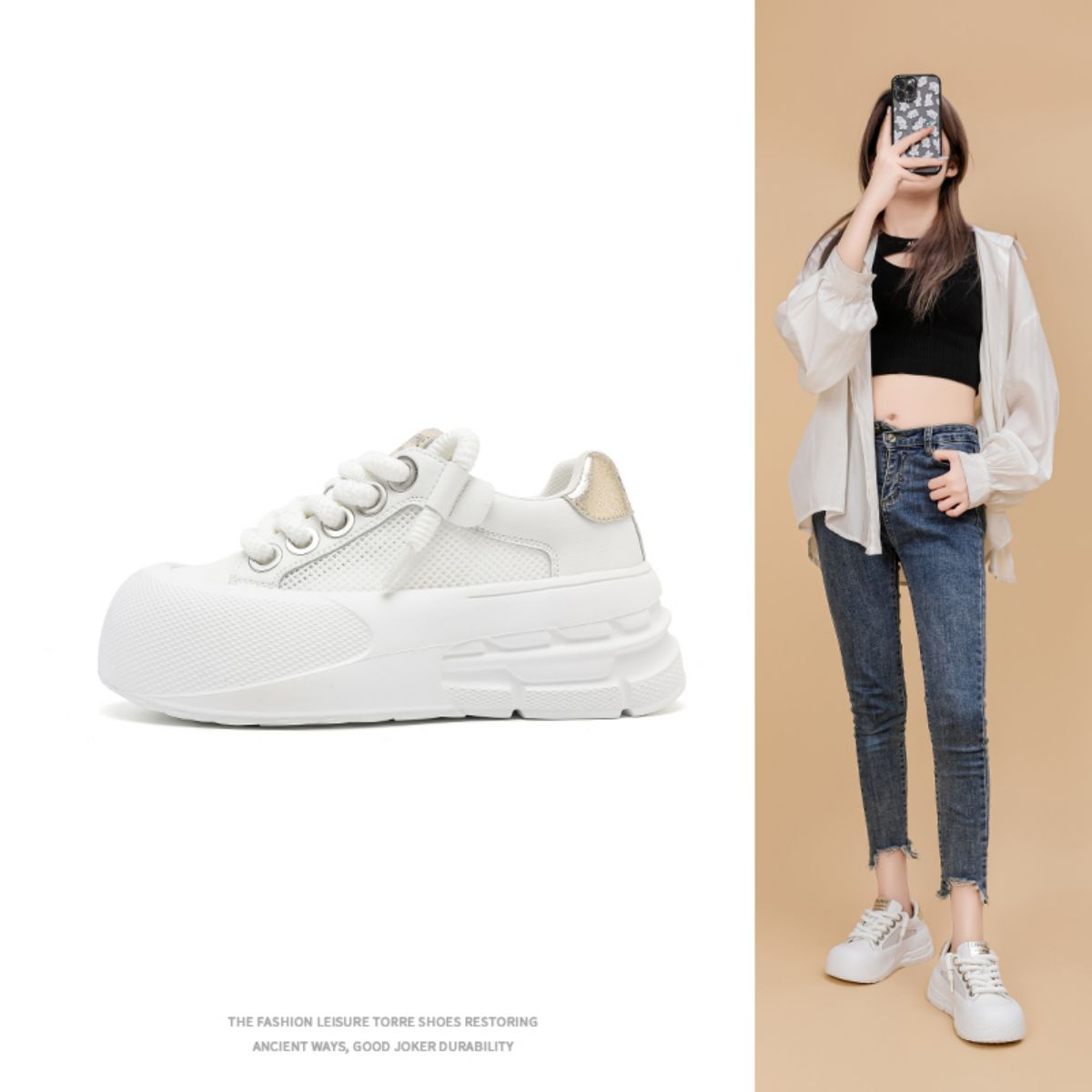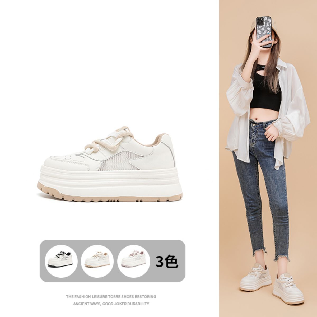 春夏小白鞋女厚底板鞋饼干鞋简约舒适透气运动休闲鞋小个子增高鞋 527127