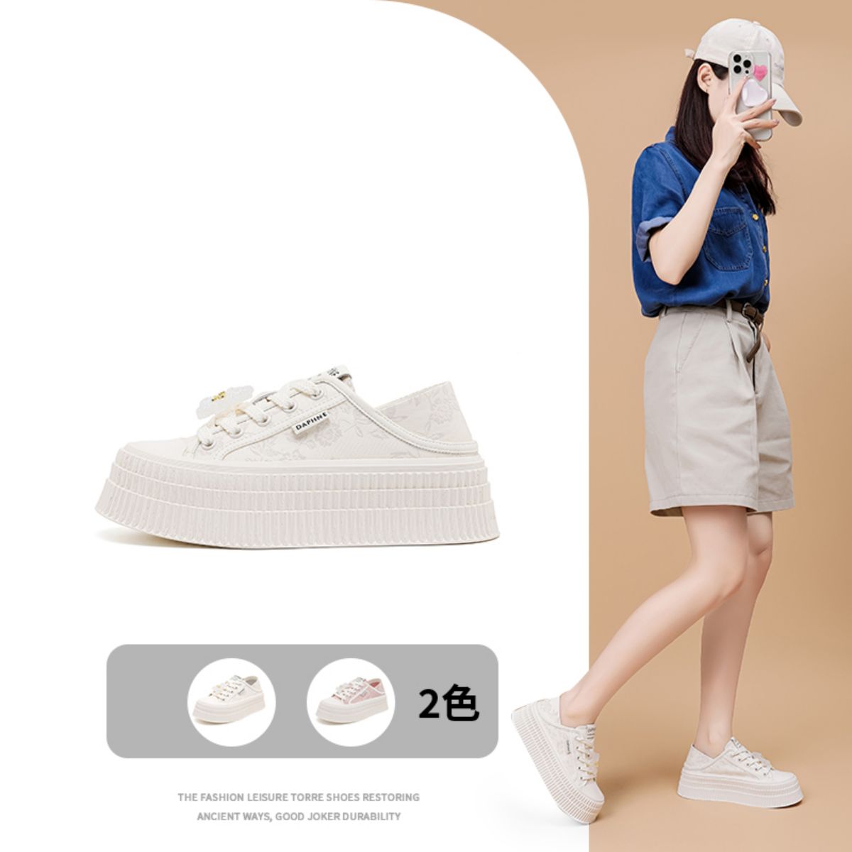 小白鞋女夏季新中式国风百搭轻便厚底板鞋透气轻薄网面运动休闲鞋 089047
