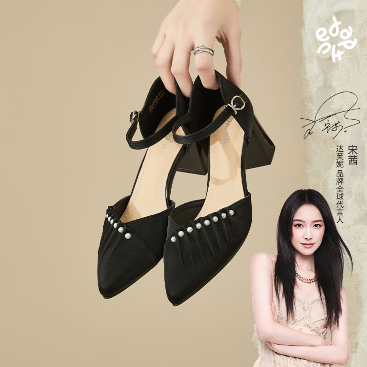 【秒高6CM】夏季爆款一字带凉鞋包头珍珠时装女鞋百搭单鞋 078807