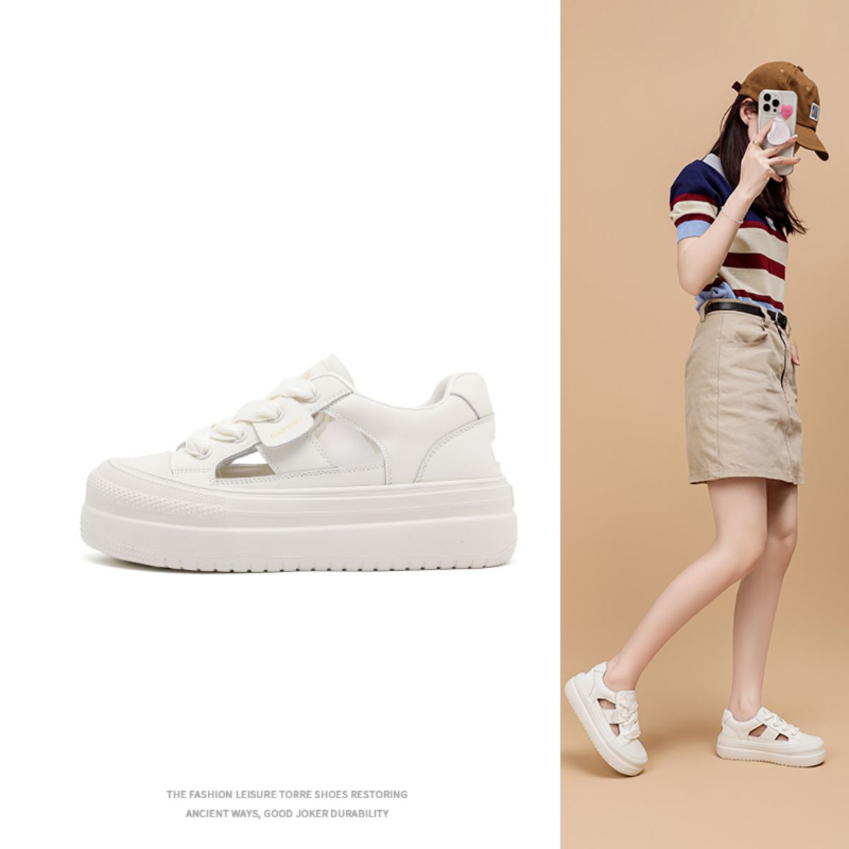 春夏镂空小白鞋女轻薄透气时尚板鞋轻便百搭运动休闲鞋厚底鞋女鞋 637911