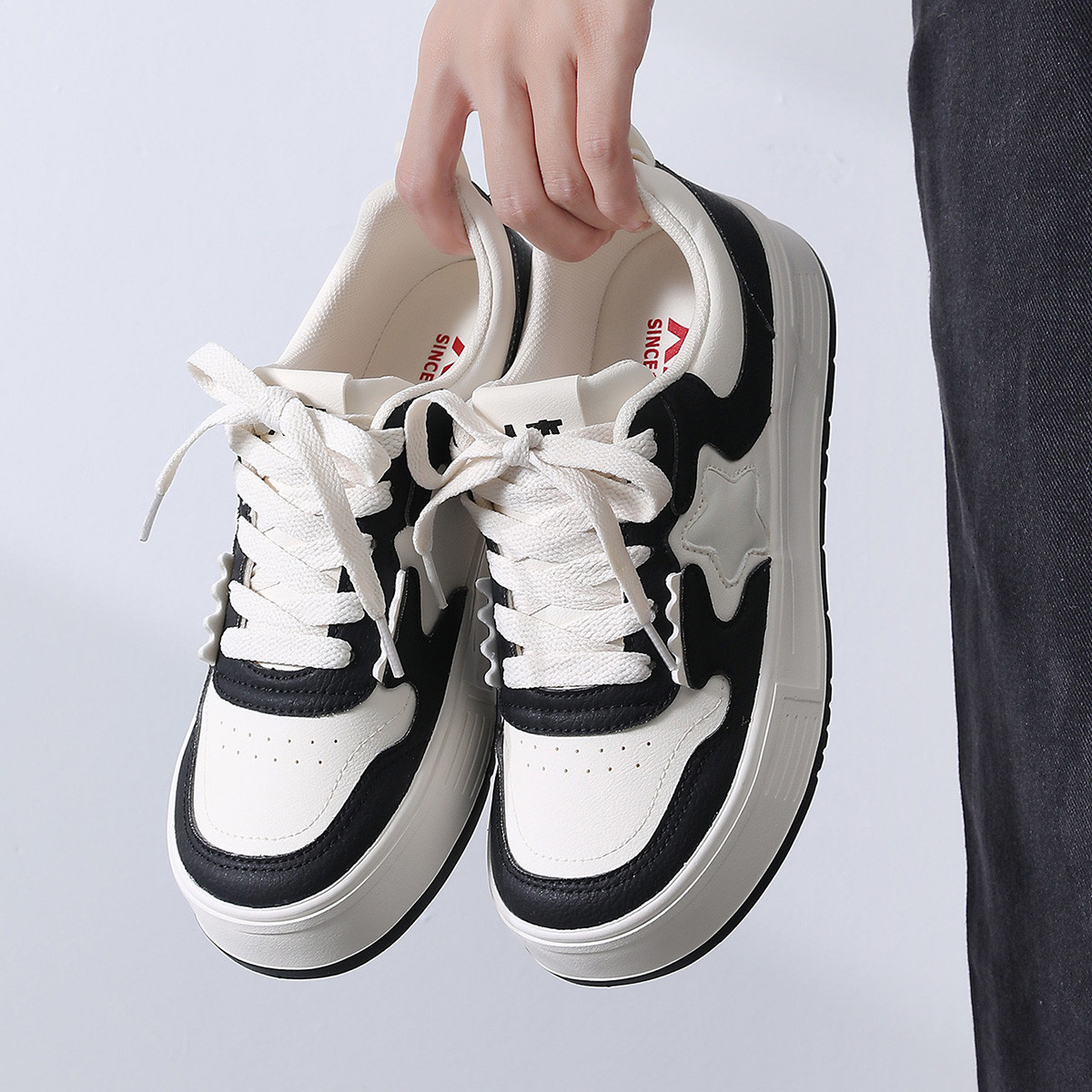 【星星设计】潮流时尚星星鞋女拼色板鞋春季时尚厚底板鞋休闲女鞋 158016