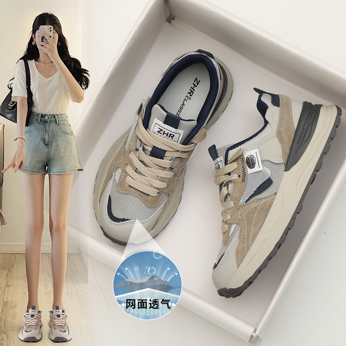 【增高显瘦】网面厚底鞋女夏季舒适百搭运动休闲鞋女老爹鞋子女鞋 806208