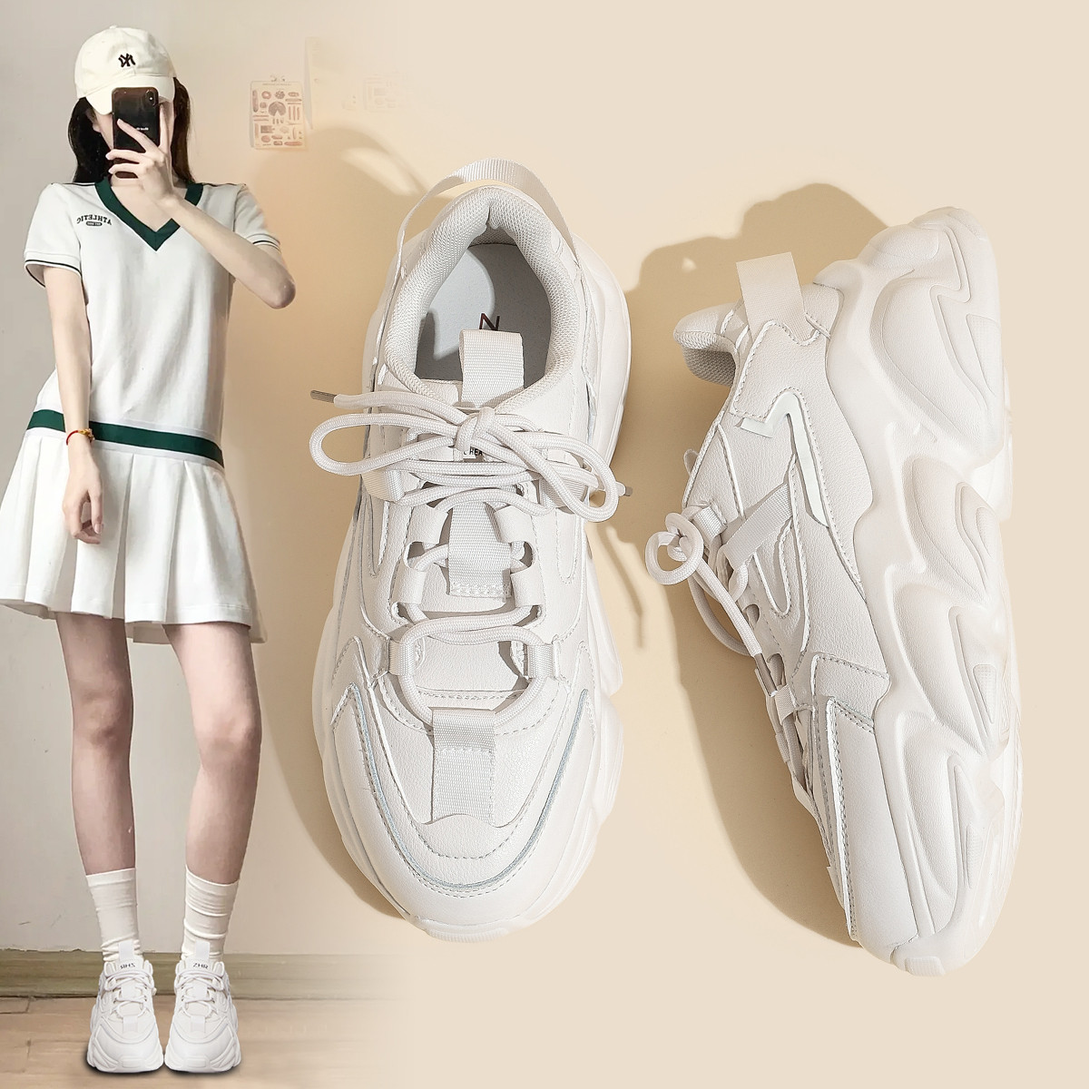 【超值捡漏】百搭小白鞋女潮款老爹鞋休闲运动鞋增高校园风女鞋 875735
