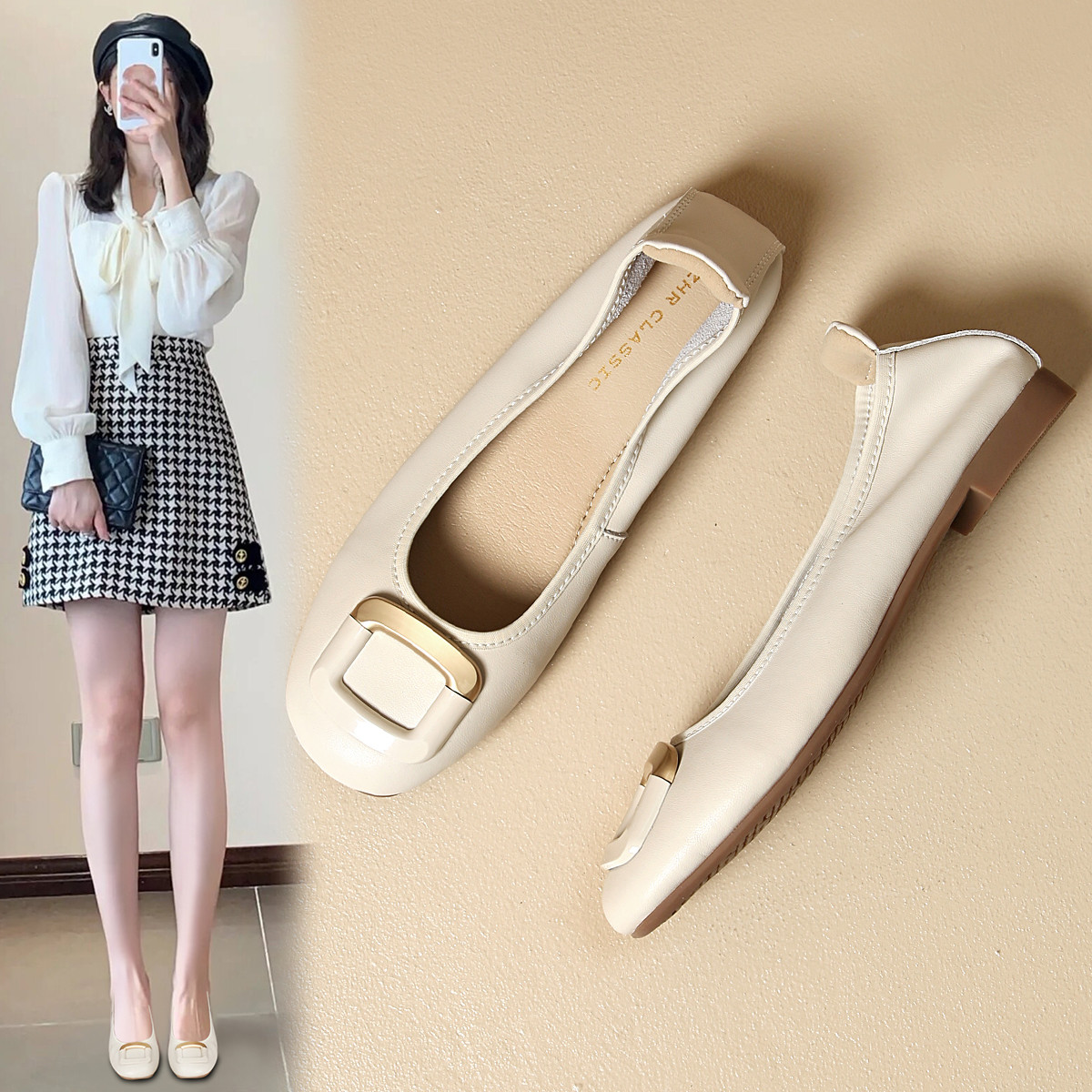【牛剖层革】芭蕾鞋女气质单鞋女士夏季蛋卷鞋女浅口单鞋女单鞋 901824