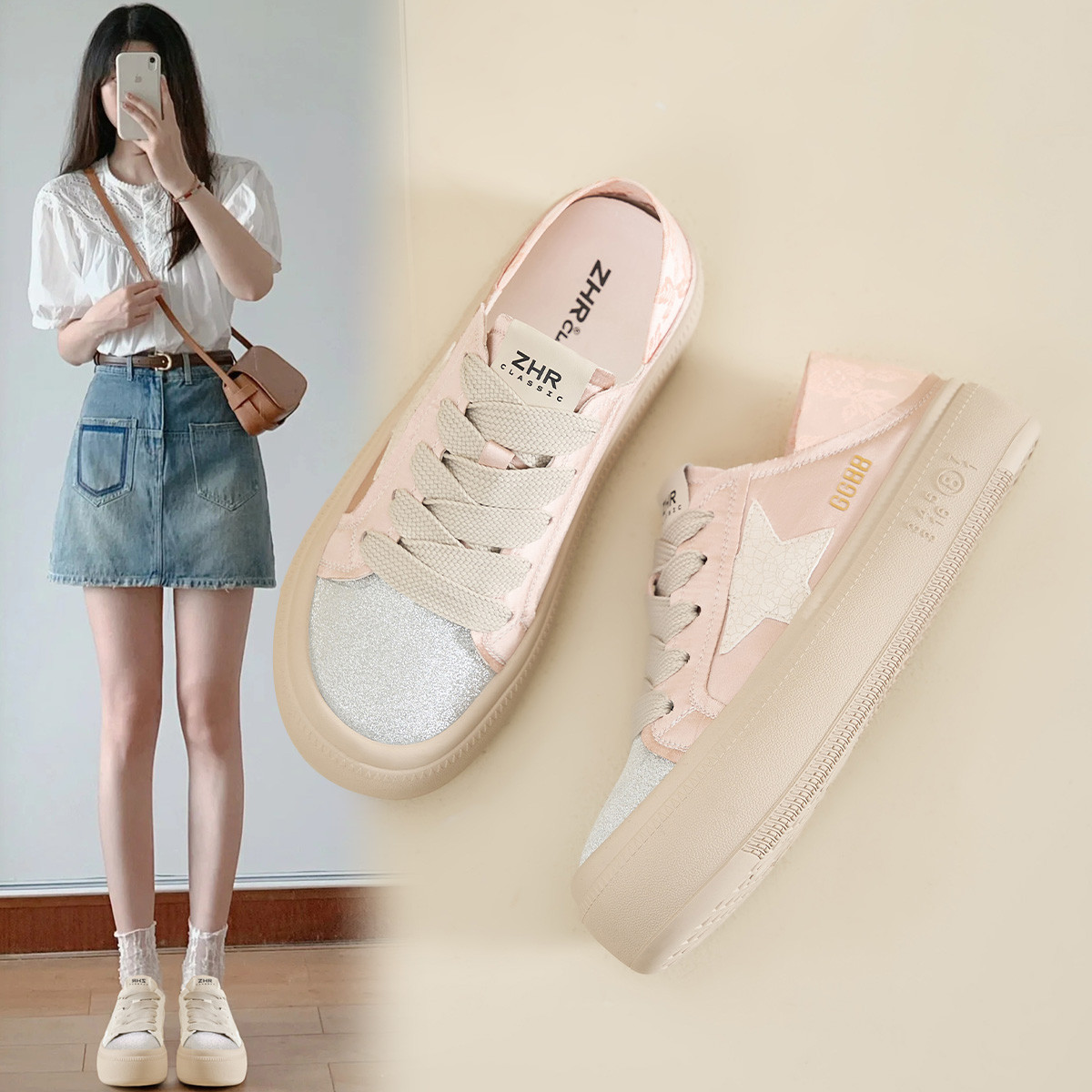 【热卖爆款】春夏女休闲鞋板鞋半拖款帆布鞋懒人鞋一脚蹬 225431