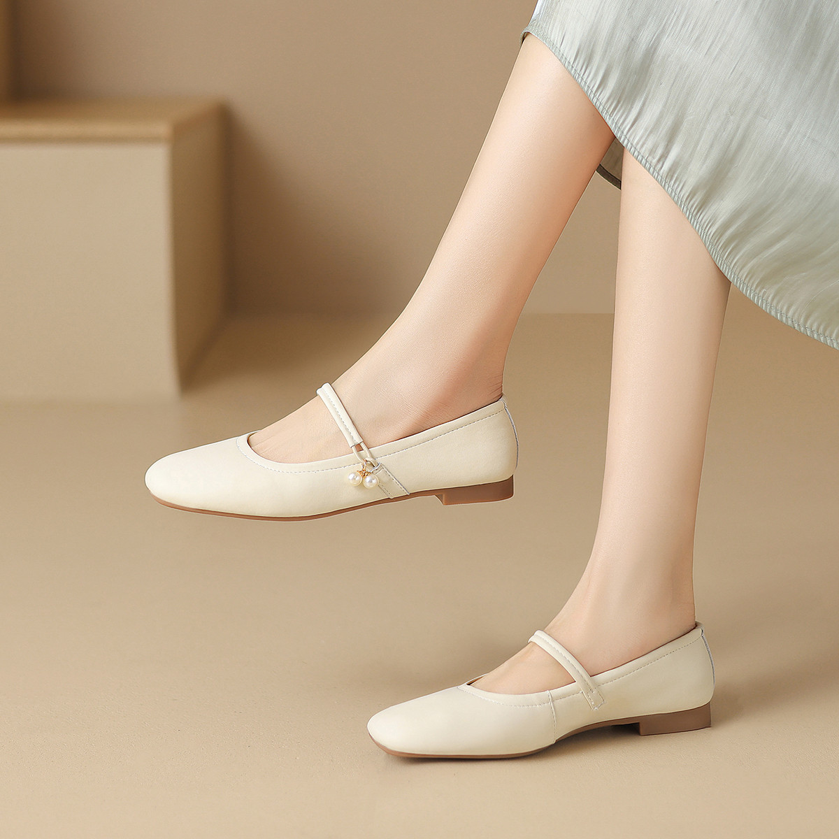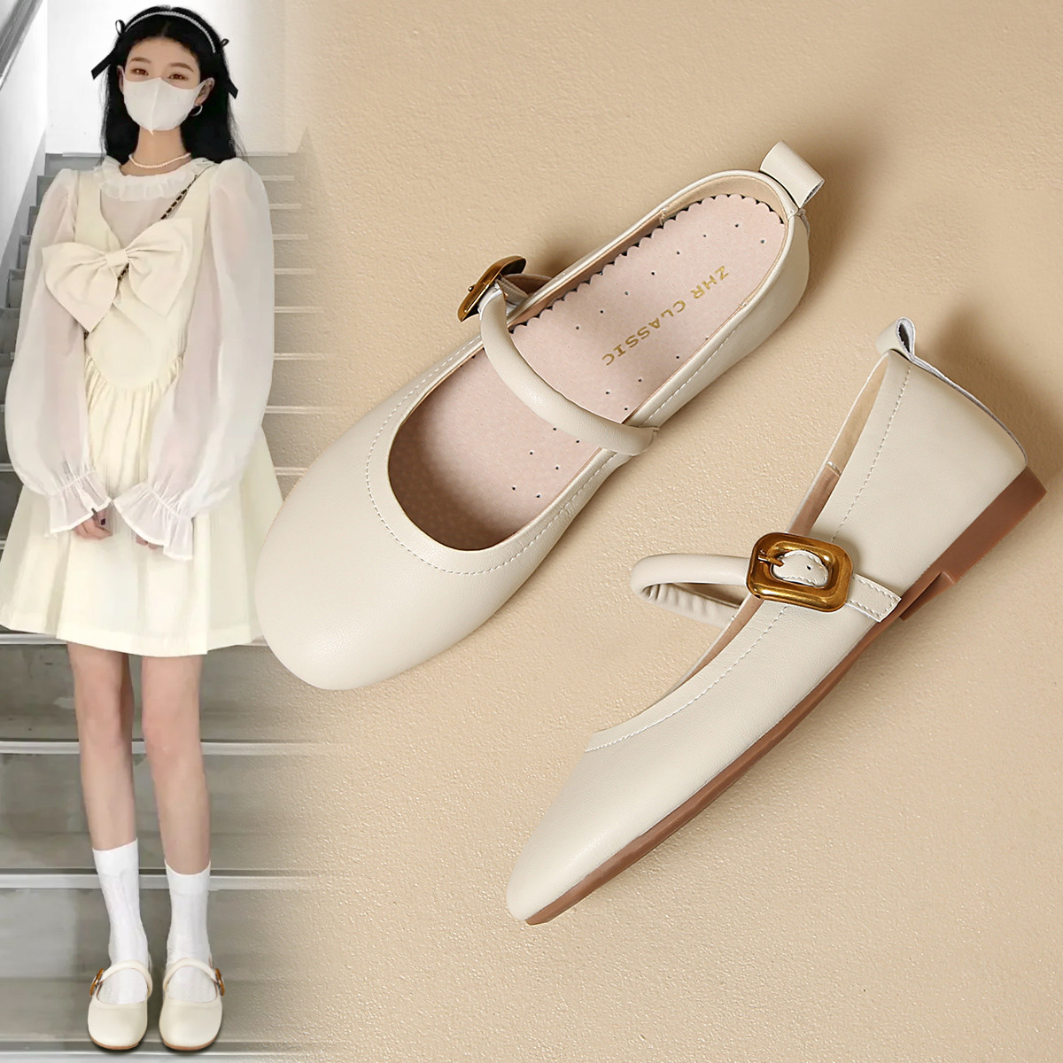 【牛剖层革】通勤鞋女小皮鞋女平底鞋女玛丽珍女浅口单鞋女夏单鞋 382656