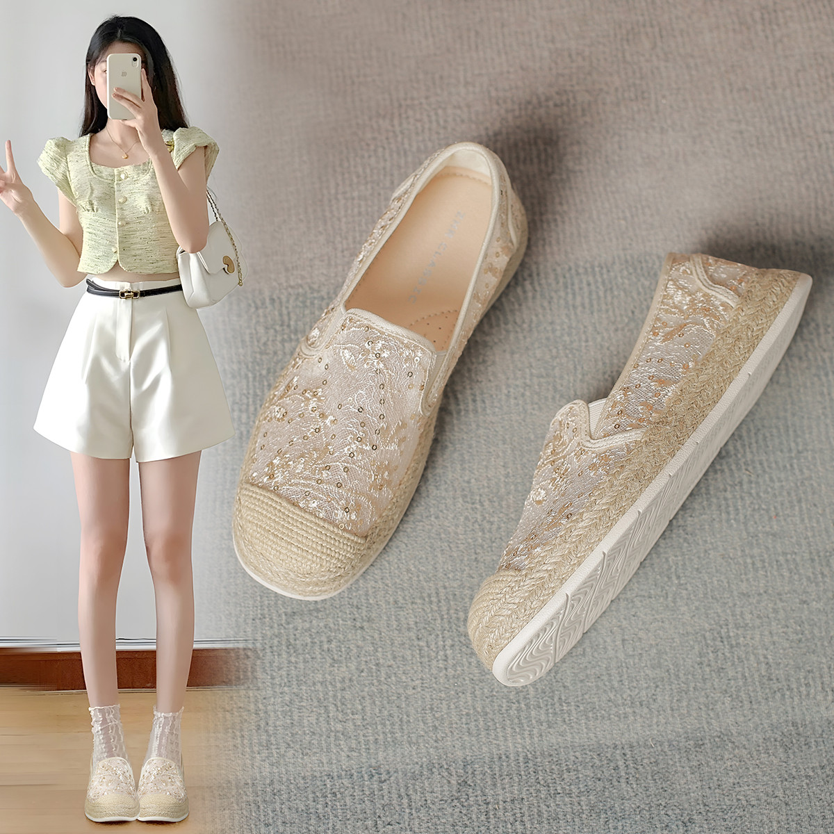 【网纱刺绣】复古渔夫鞋一脚蹬平底气质高级感单鞋女夏季女士单鞋 940544