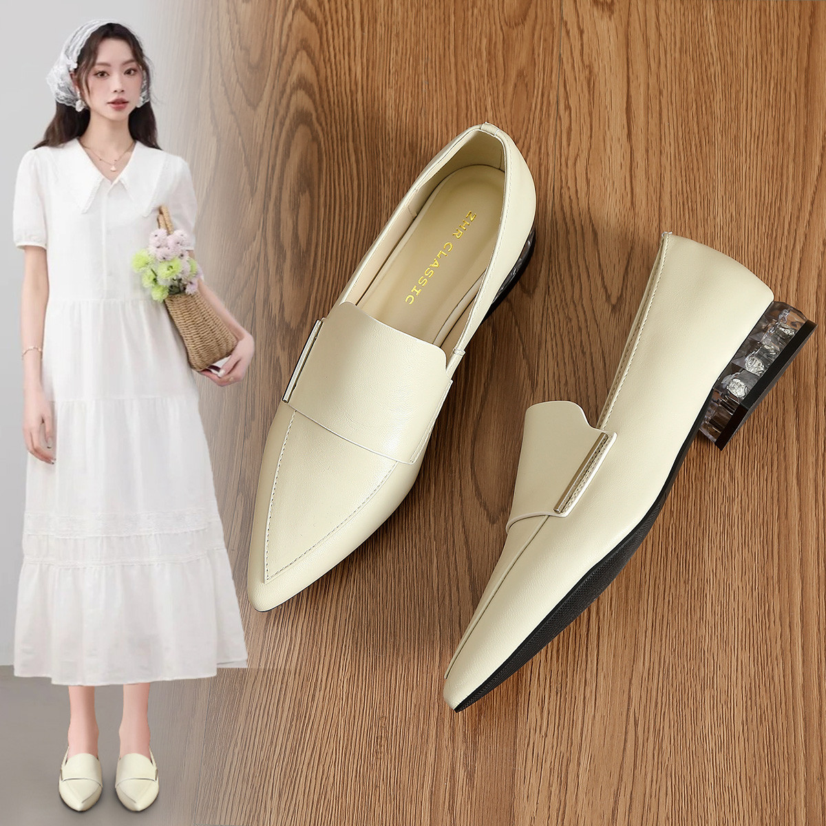 【牛剖层革】百搭一脚蹬女鞋平底鞋女气质高级感浅口单鞋女夏女鞋 204032