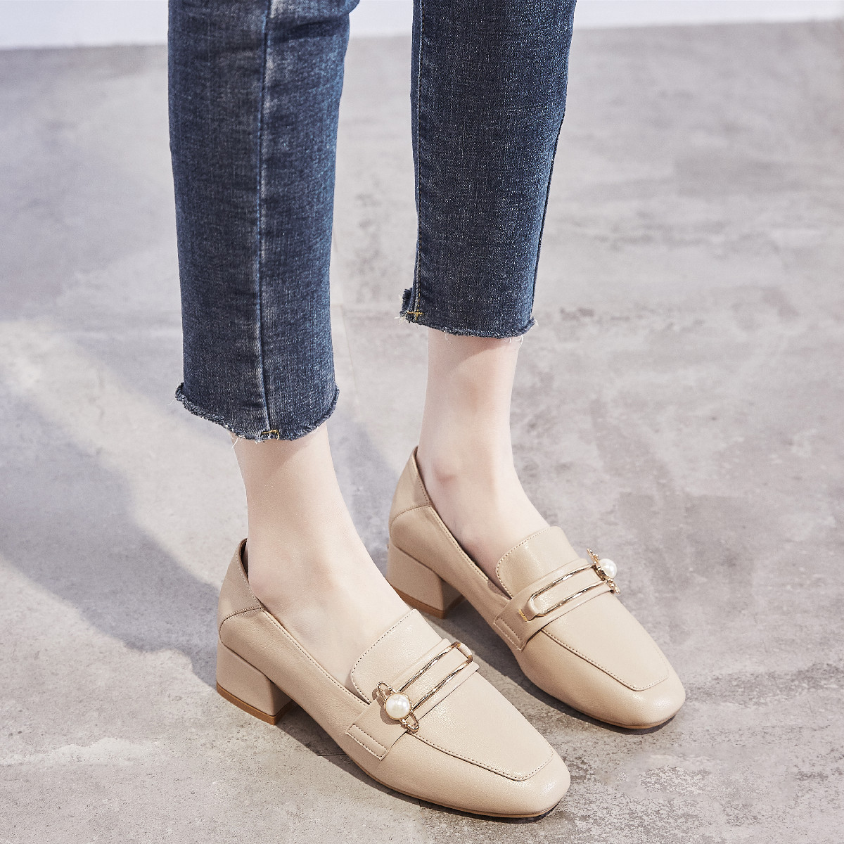【珍珠扣件】一脚蹬职业通勤鞋女小皮鞋子女春秋乐福鞋女单鞋女鞋 662336