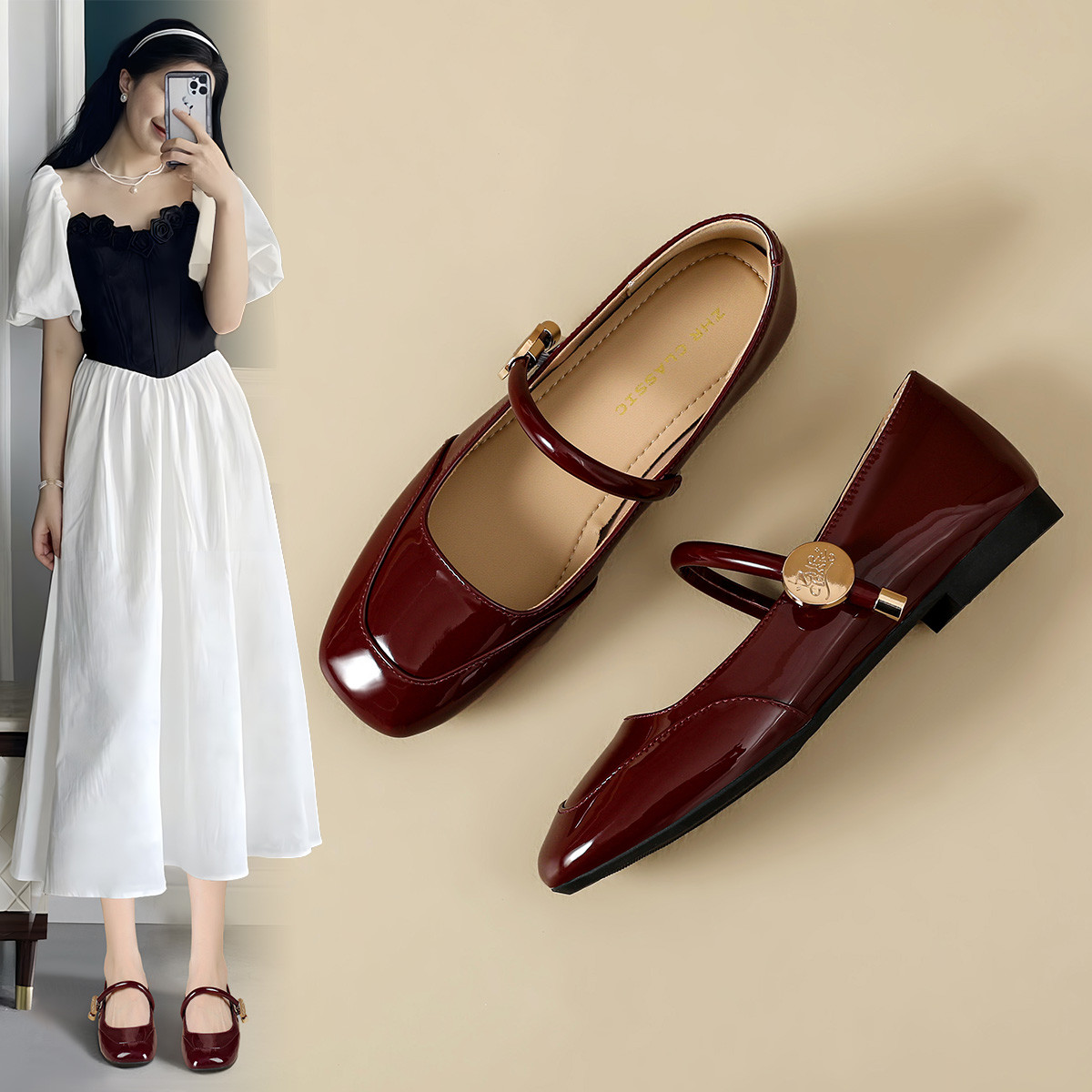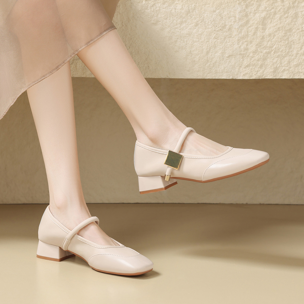 【质感方扣】新中式小皮鞋子气质通勤鞋夏季款玛丽珍鞋女单鞋女 582720