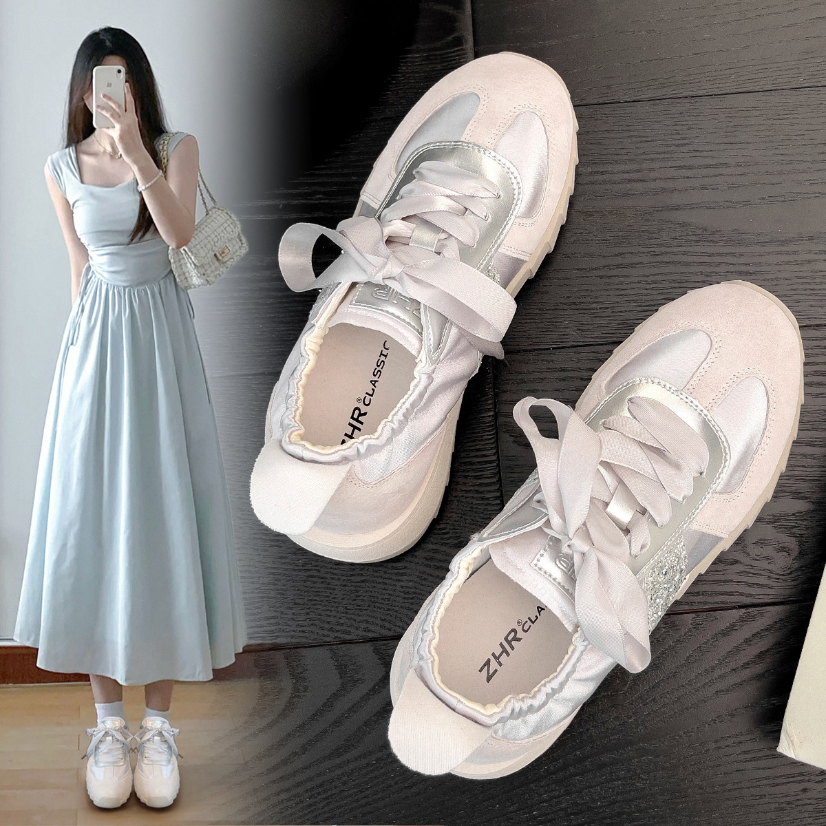 【优雅丝带】复古芭蕾鞋女士百搭德训鞋女时尚休闲鞋子女鞋春夏款 288064