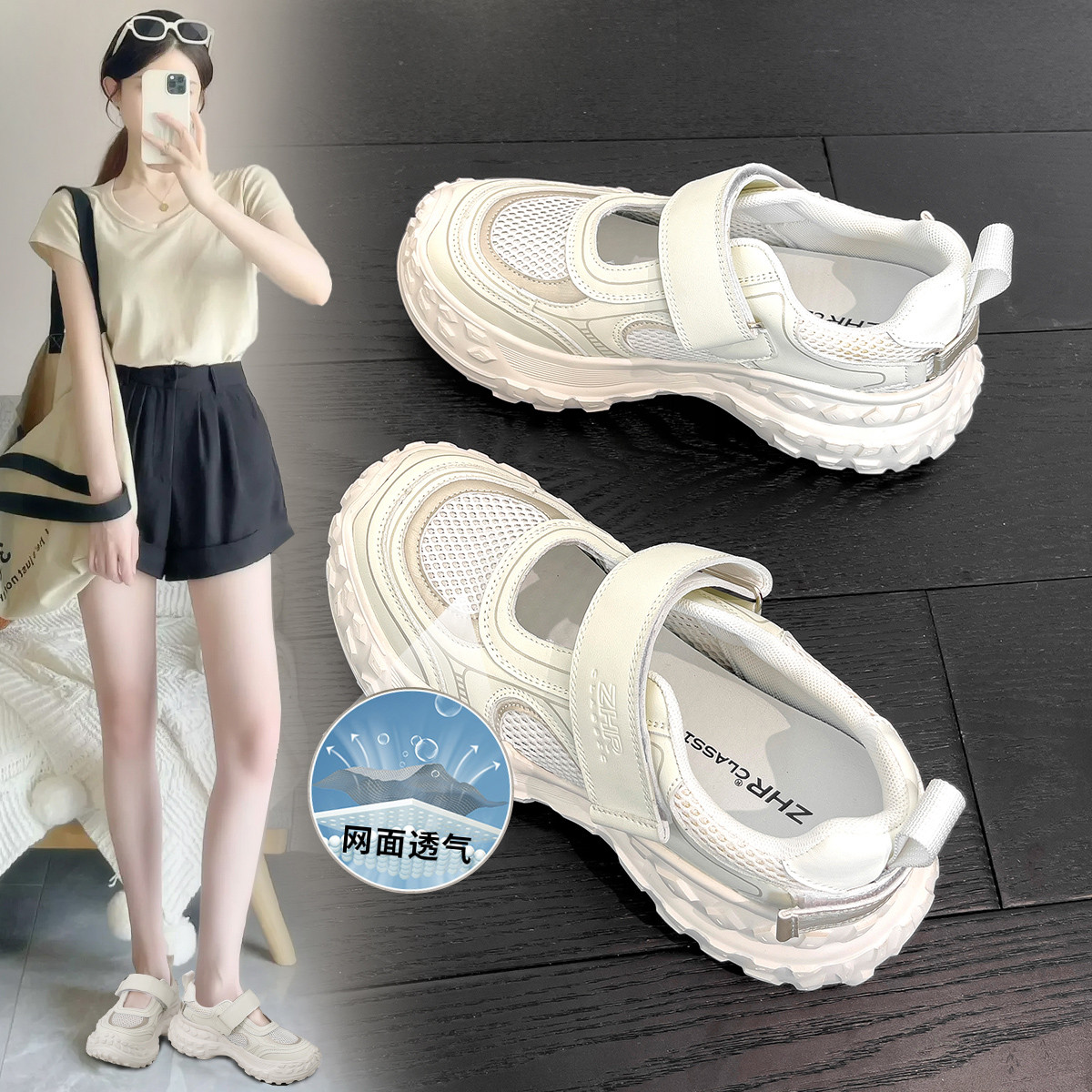 【魔术贴】网面厚底增高女休闲鞋柔软舒适百搭老爹鞋子女鞋夏季款 514432