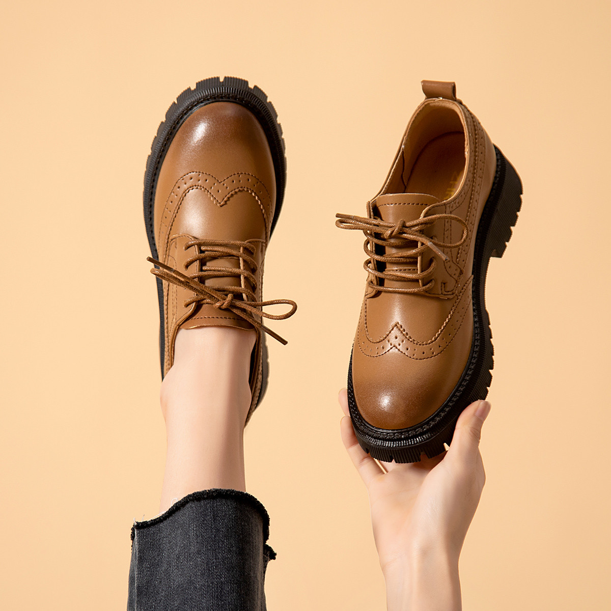 【亮面漆皮】布洛克鞋制服鞋厚底乐福鞋女英伦风小皮鞋子女单鞋女 530880