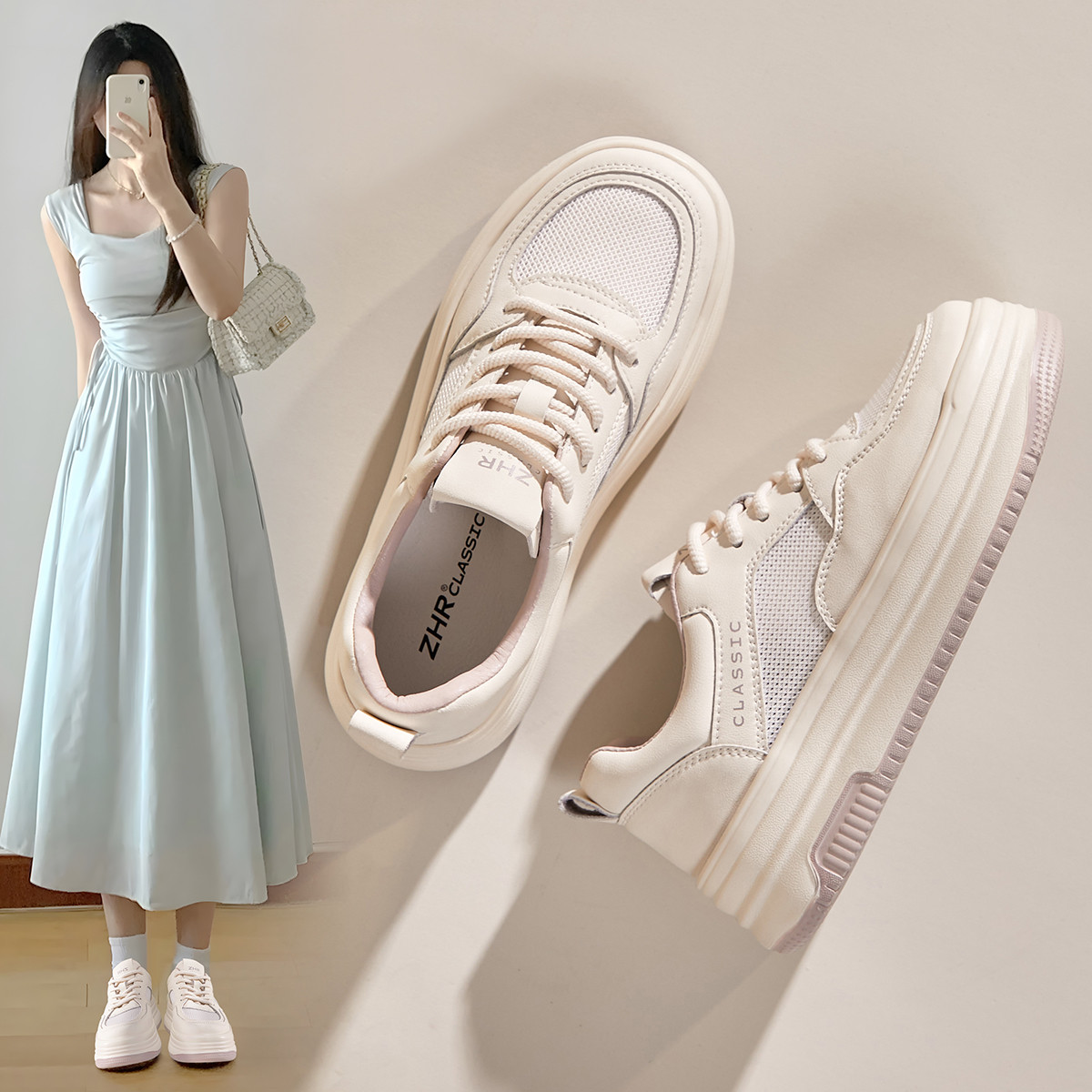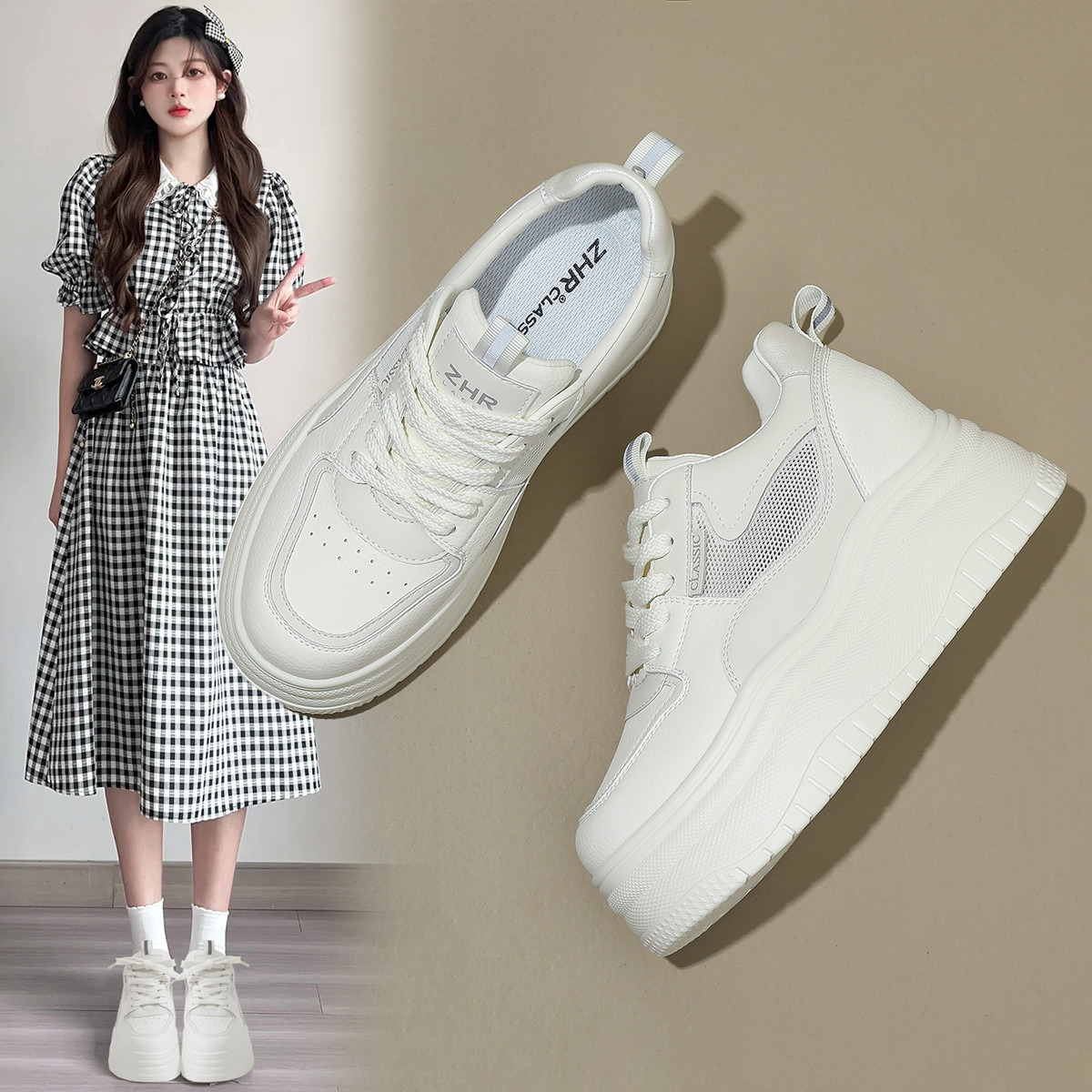【秒高6.5】透气休闲鞋女网面鞋夏款2024百搭小白鞋女鞋子 438144