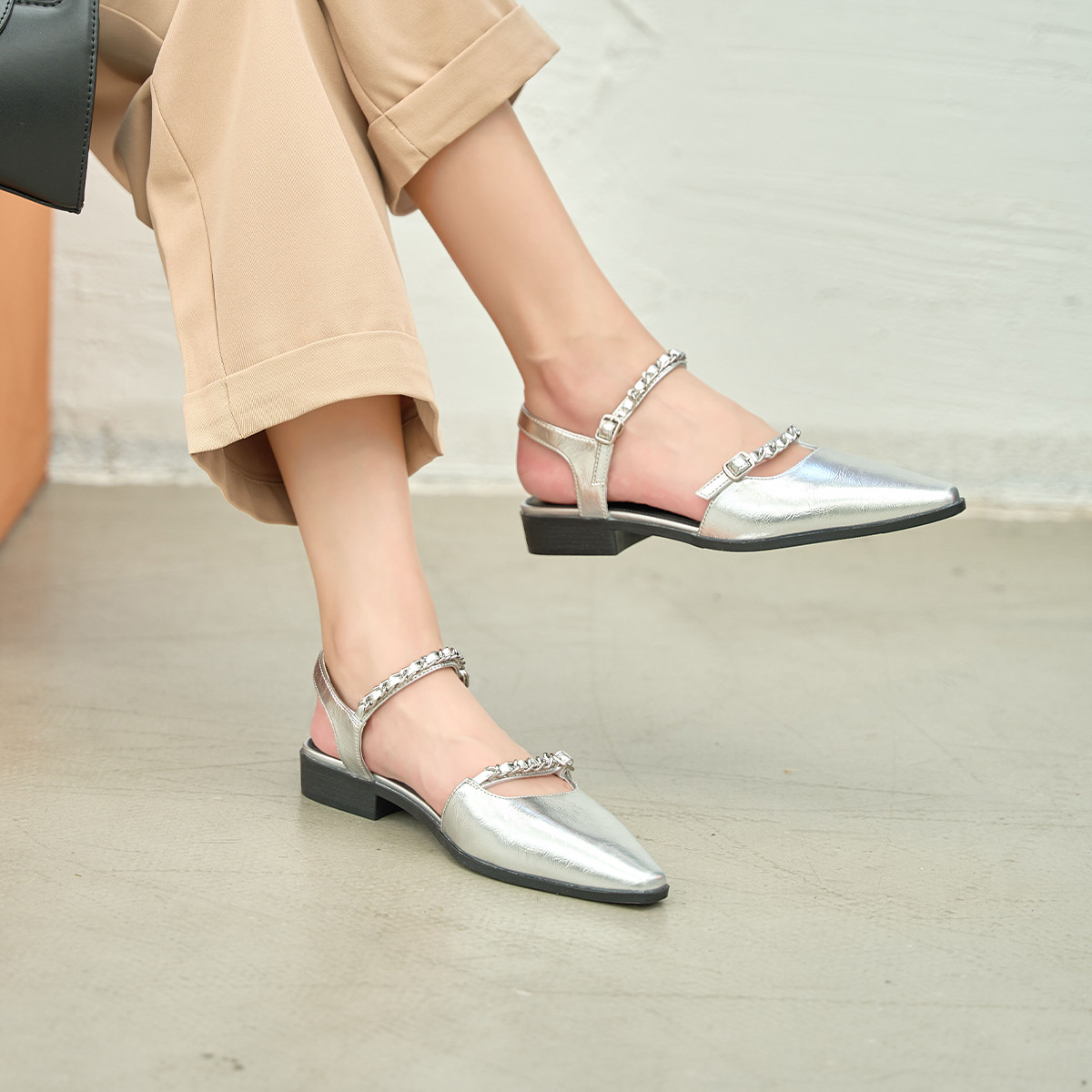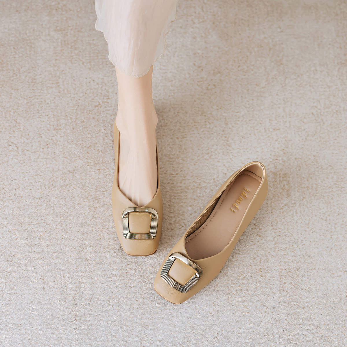 春夏气质优雅金属方扣舒适软面纯色方头百搭通勤女单鞋 836993