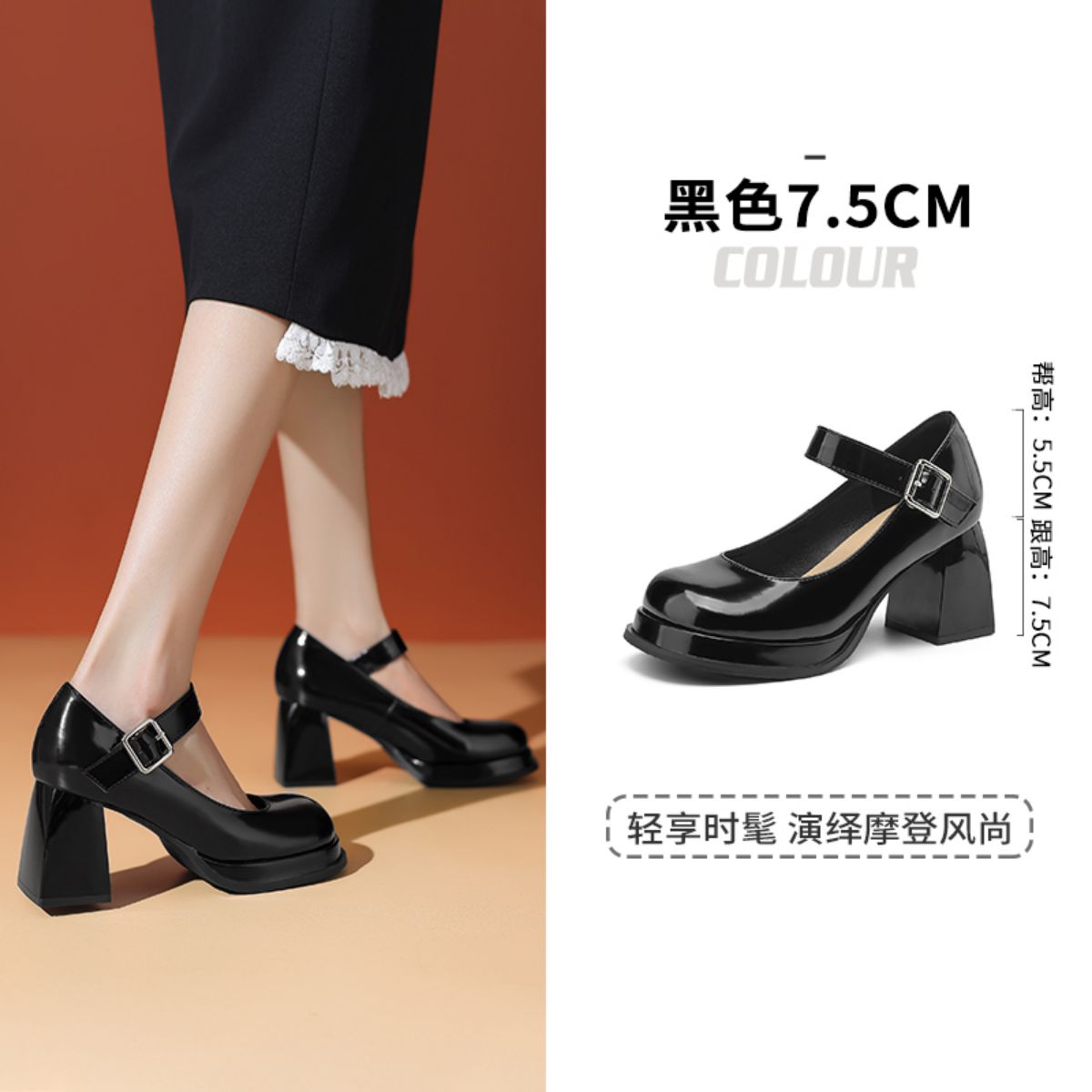 【秒高7.5CM】夏季一字带女单鞋玛丽珍气质高跟鞋深口时装鞋 435479