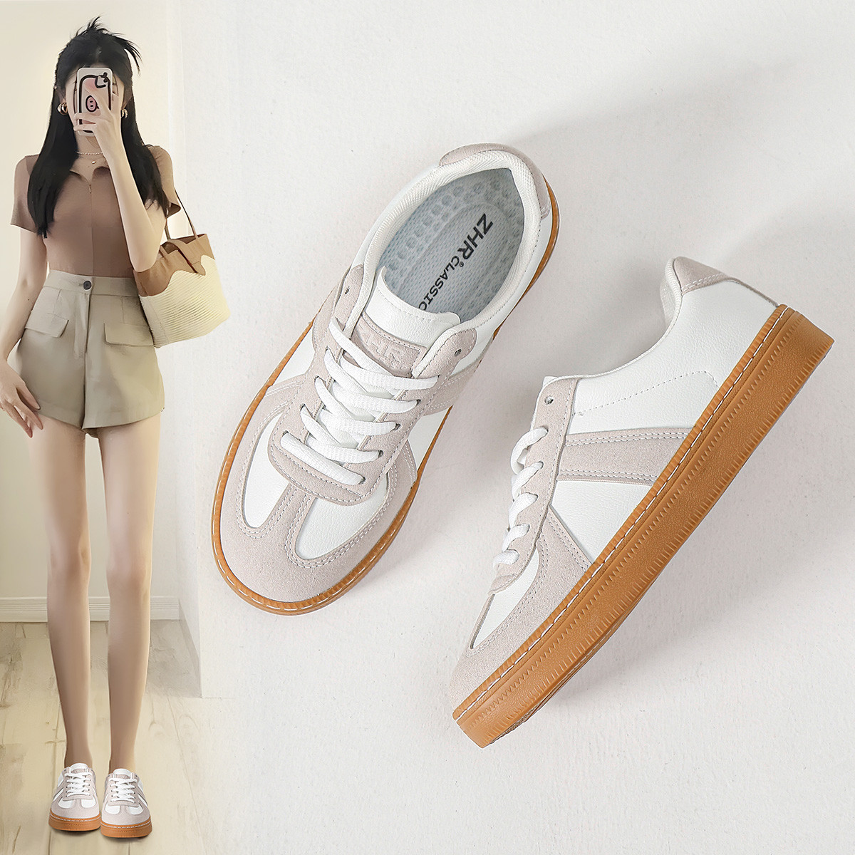 【复古撞色】春秋款时尚休闲运动板鞋情侣款舒适百搭德训鞋子女鞋 600064