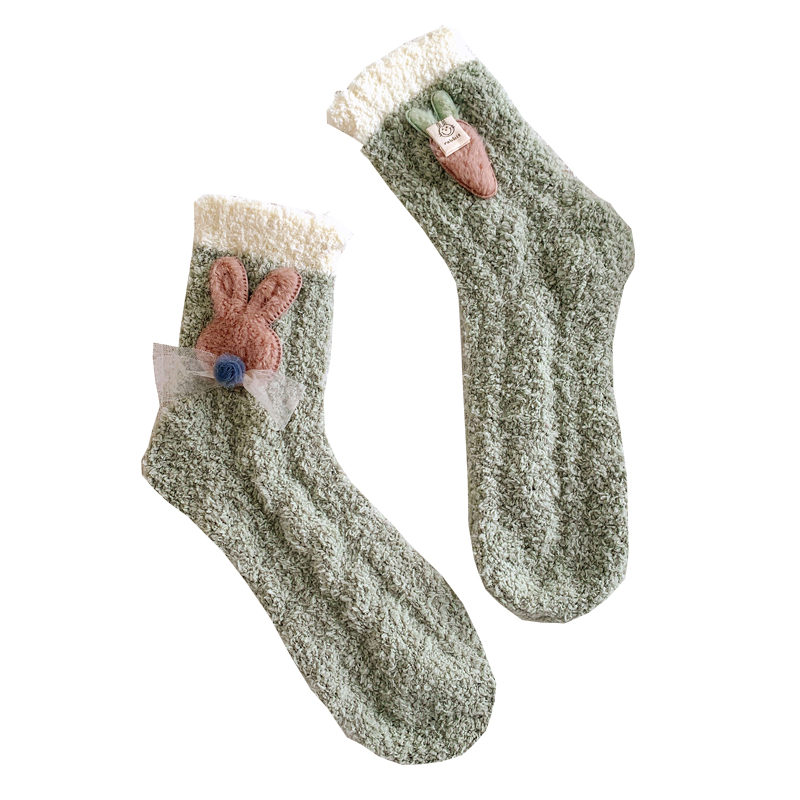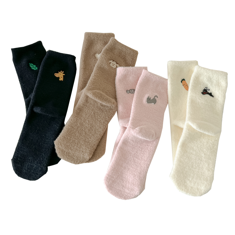 【4双装】可爱毛绒袜子女中筒袜秋冬季加绒加厚保暖奥绒睡眠袜毛茸茸月子袜