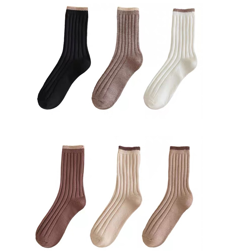 【6双装】朝暮栖止袜子女透气简约吸汗纯色宽边袜堆堆袜女士ins长袜中筒袜子