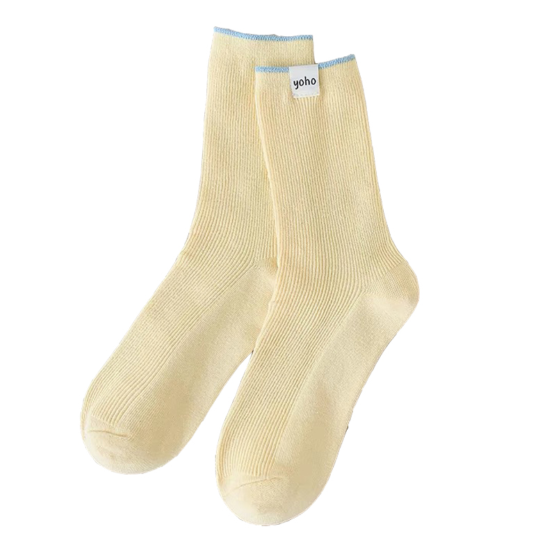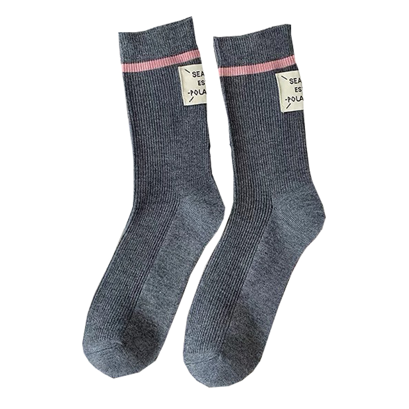【5双装】朝暮栖止小布标袜子女中筒袜春秋季薄款细条堆堆袜ins韩版潮棉袜