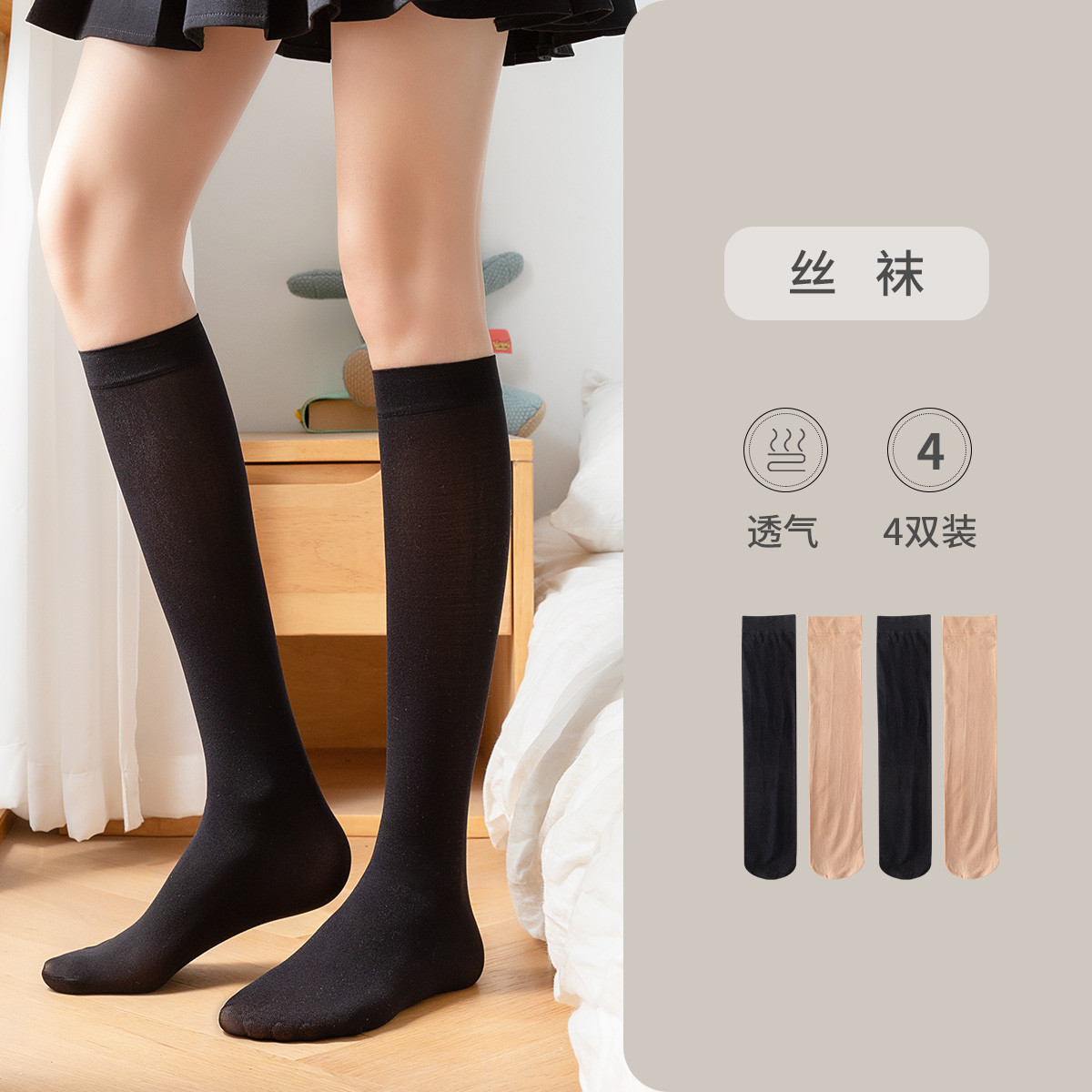 【4双装】纯色丝袜女士春夏款舒适透气长筒袜薄款小腿丝袜 672715