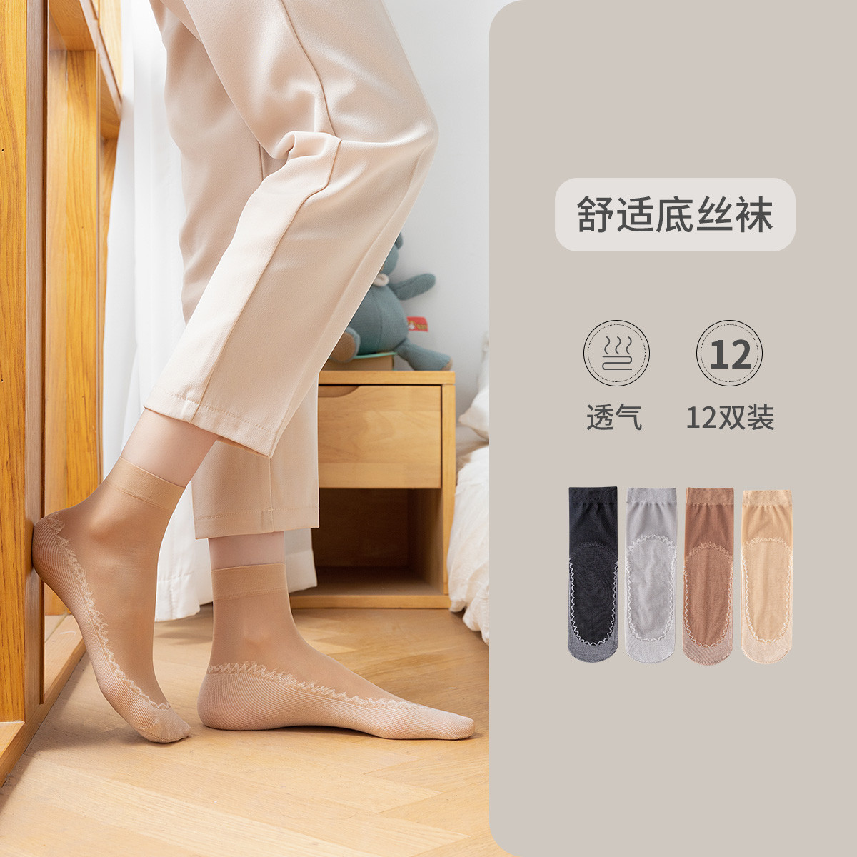 【12双装】夏季薄款丝袜脚底防滑透气女士袜子舒适清凉水晶袜 494987