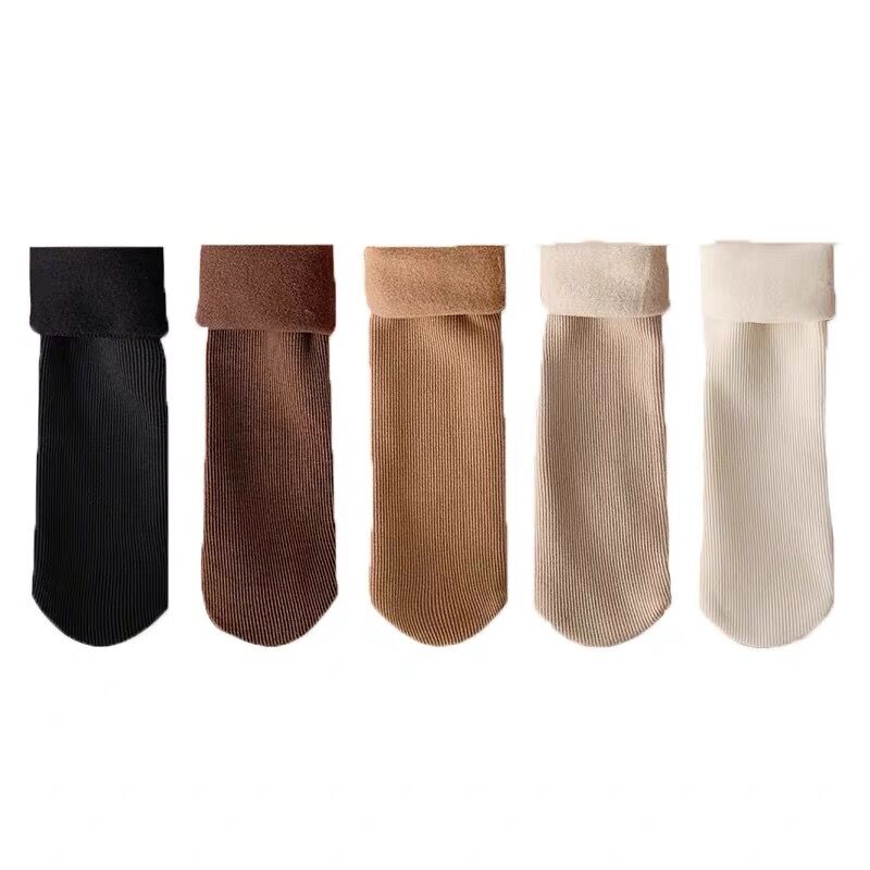 【5-10双装】朝暮栖止女士冬季保暖纯色雪地袜加绒加厚御寒地板袜子