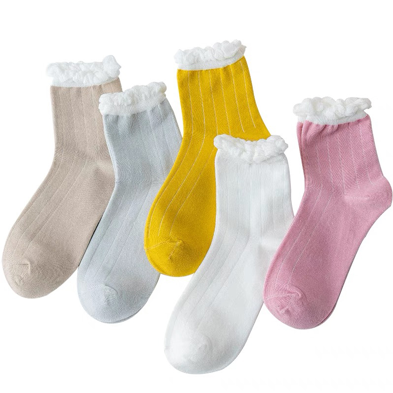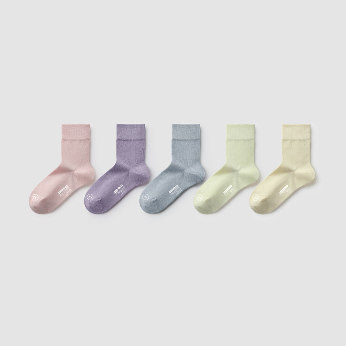 【5双装】女士纯色小清新款透气吸汗舒适月子袜中筒棉袜子