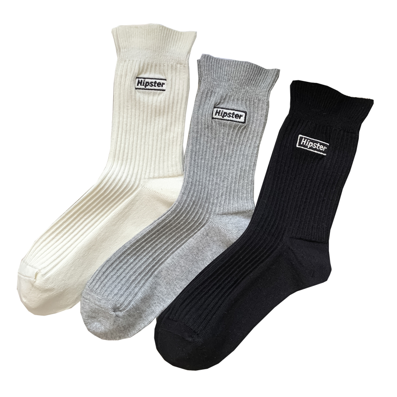 【3双装】ins风韩国东大门秋冬加厚保暖针织纯色布标韩版女袜堆堆中筒袜
