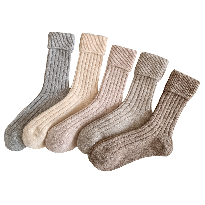 【5双装】朝暮栖止粗针毛绒袜感厚袜子女冬翻口保暖冬双针南极绒中筒堆堆袜